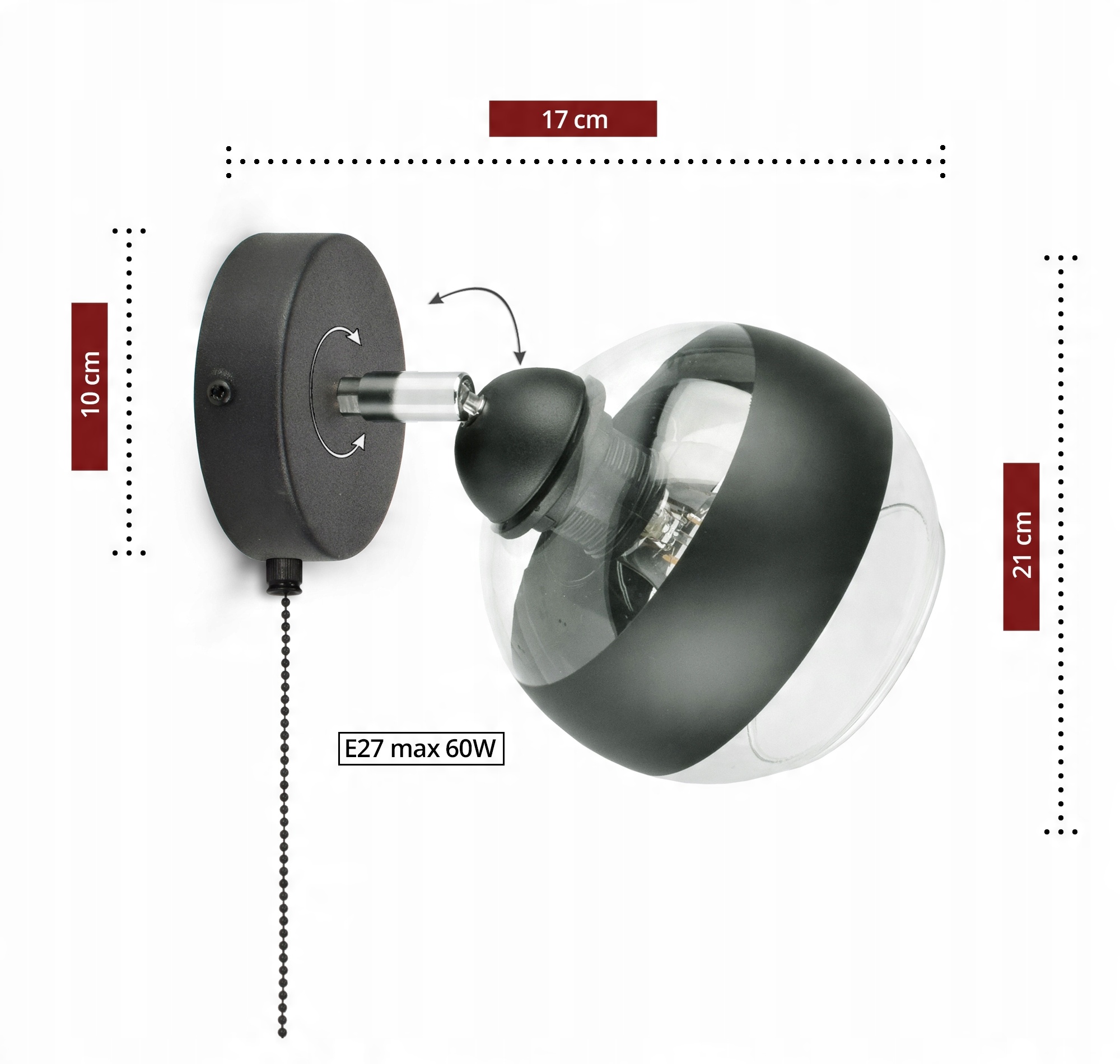 Zestaw nie zawiera żarówki, a także kołków rozporowych (należy dobrać odpowiednie do ściany).