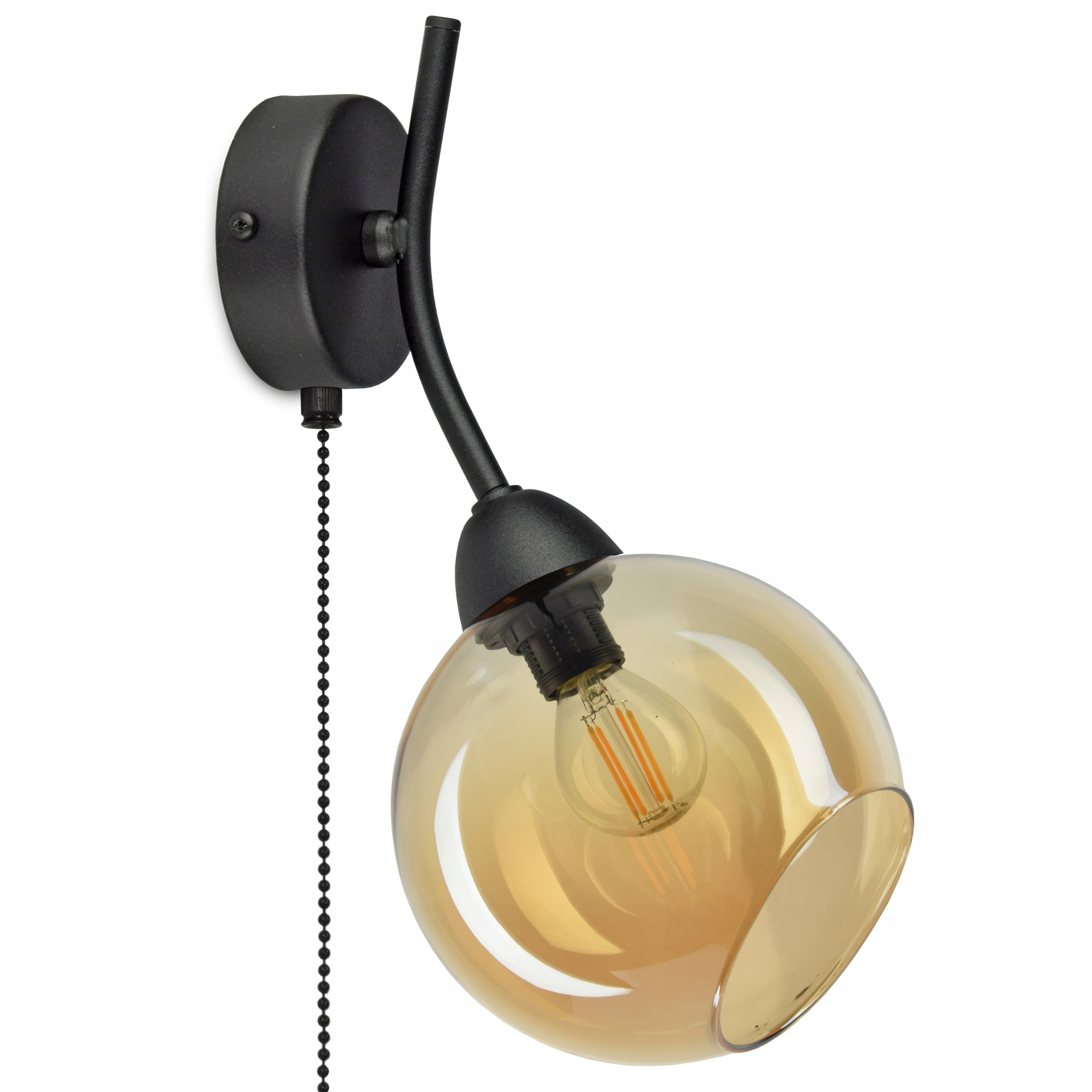 Kinkiet - lampa ścienna wyposażona w szklany klosz w kształcie kuli w kolorze Miodowym.