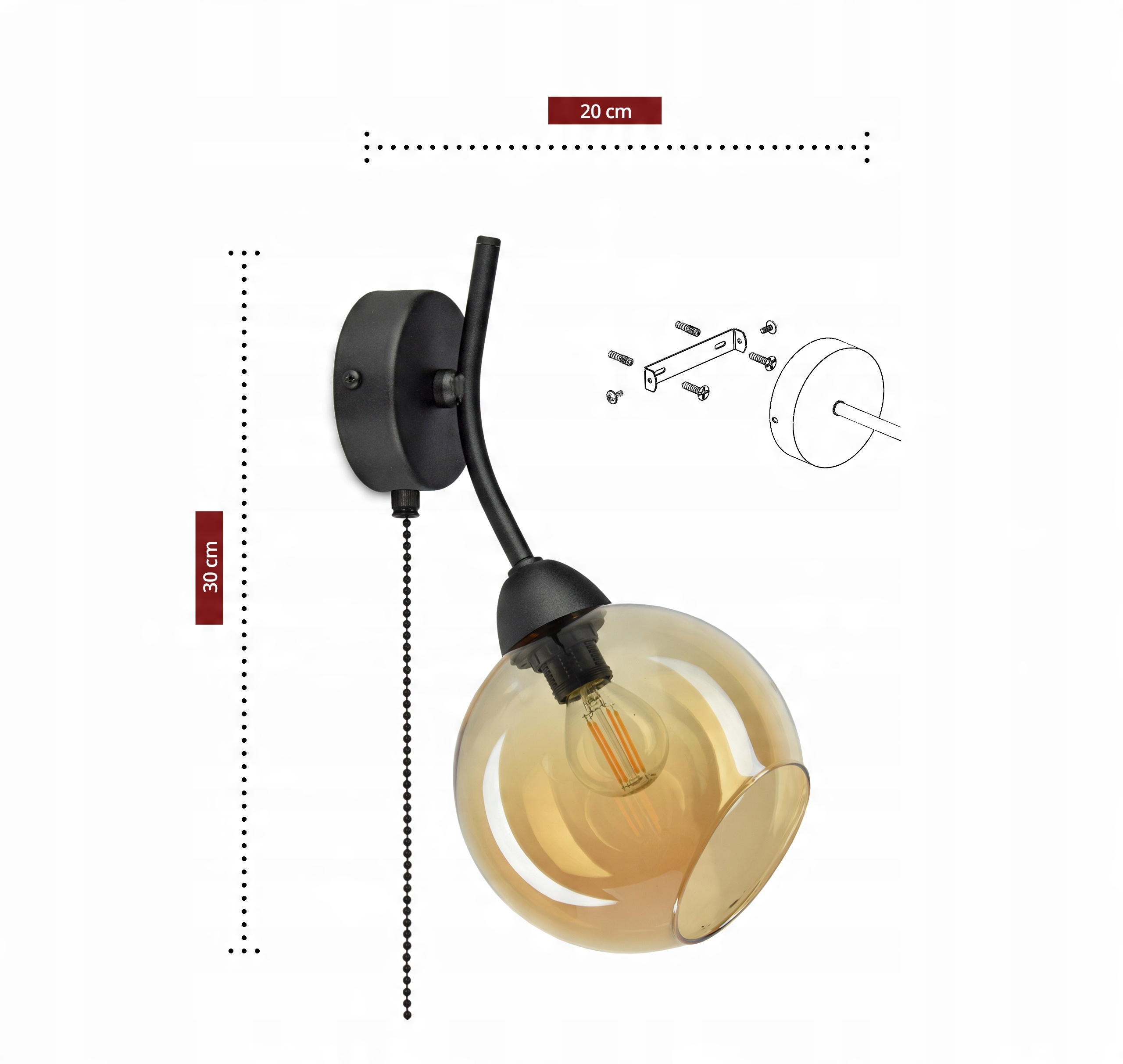 Zestaw nie zawiera żarówki oraz kołków (należy dobrać odpowiednie do rodzaju ściany)