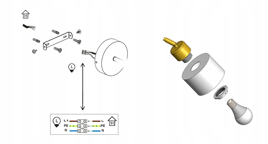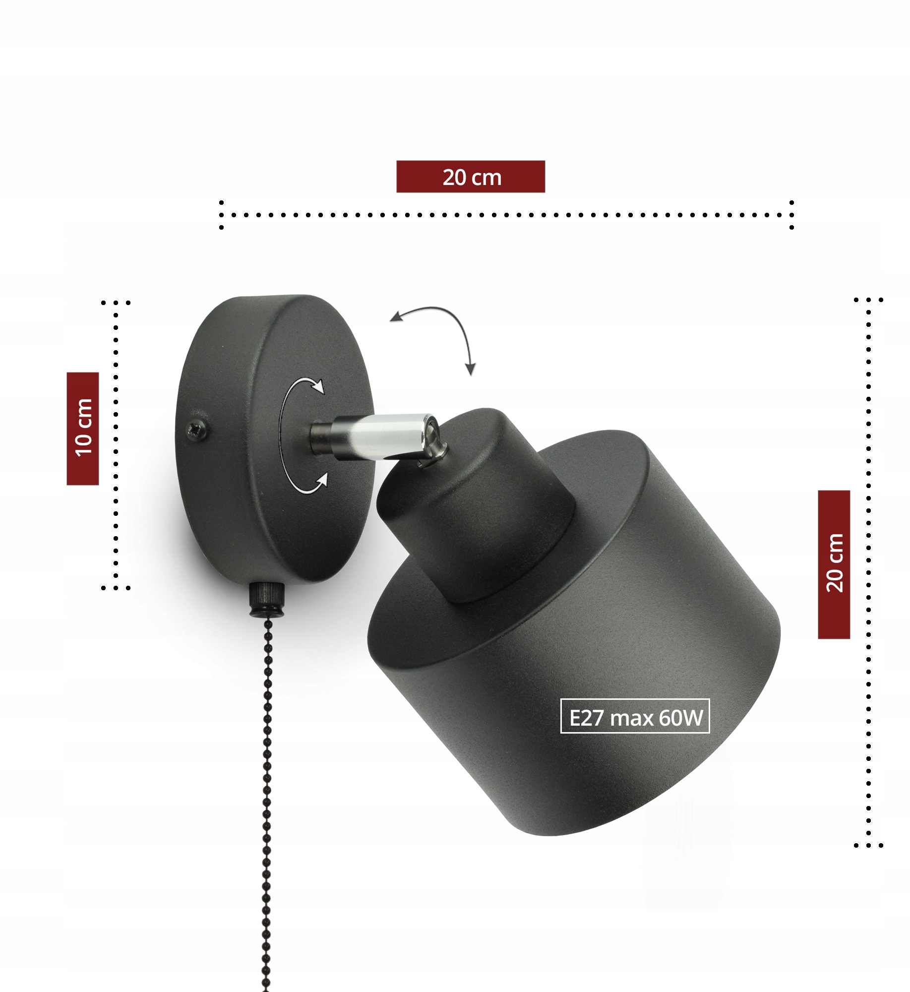 Zestaw nie zawiera żarówki ani kołków rozporowych (należy dobrać odpowiednie do ściany)