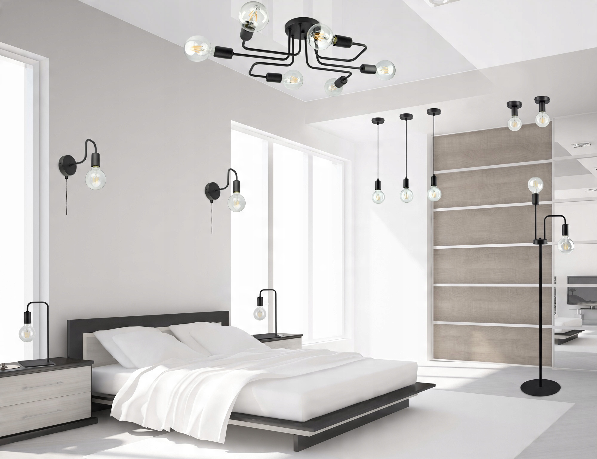 Lampa obsługuje żarówki o różnym kształcie jednak większa objętość żarówki daje lepszy efekt wizualny.