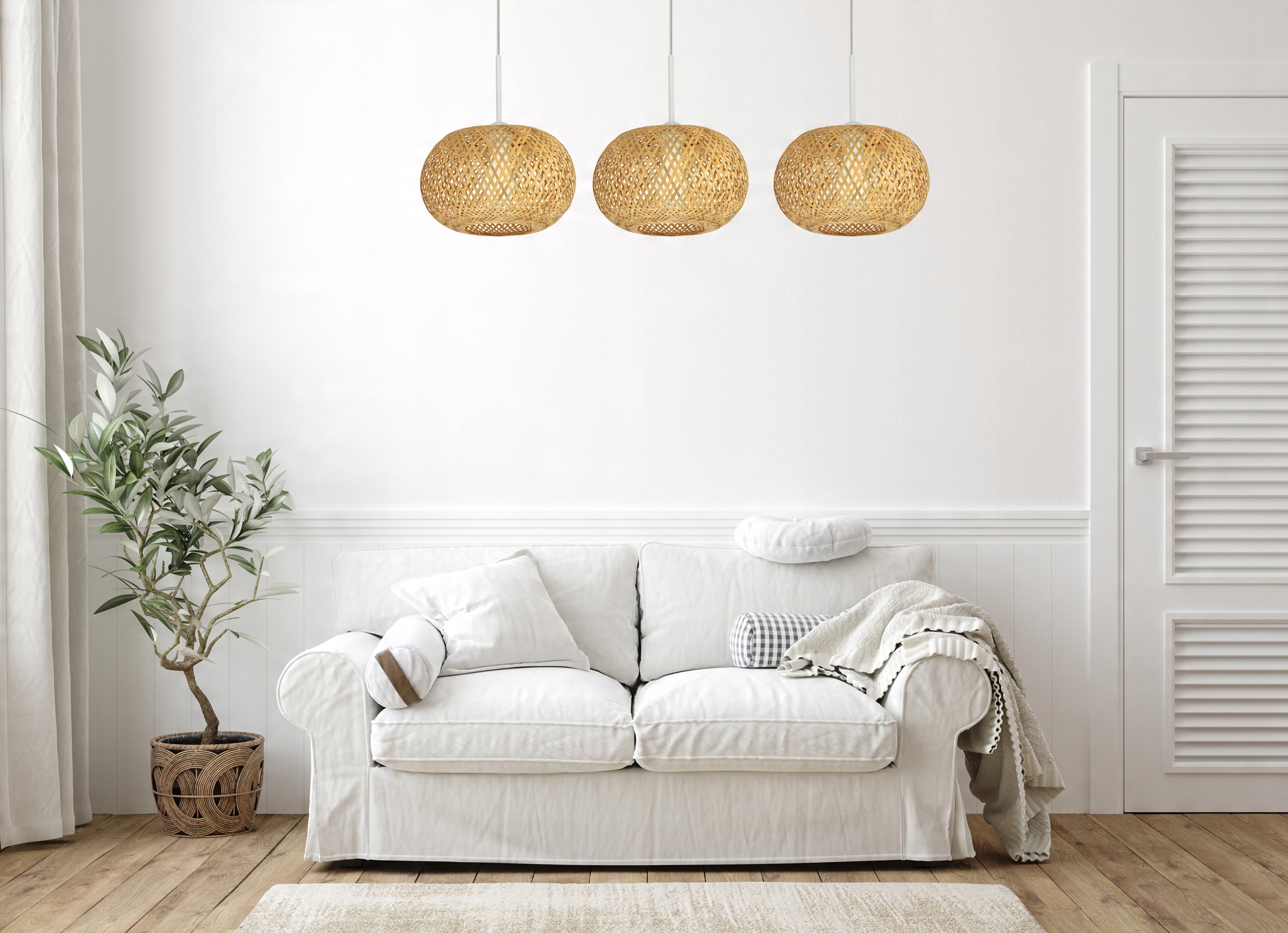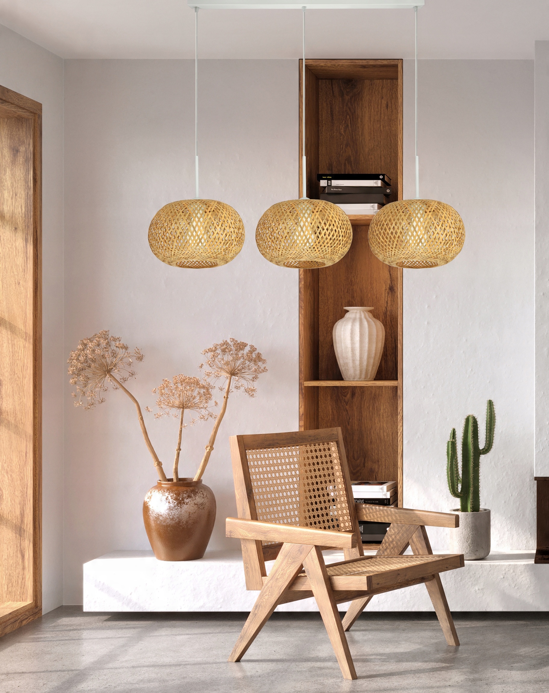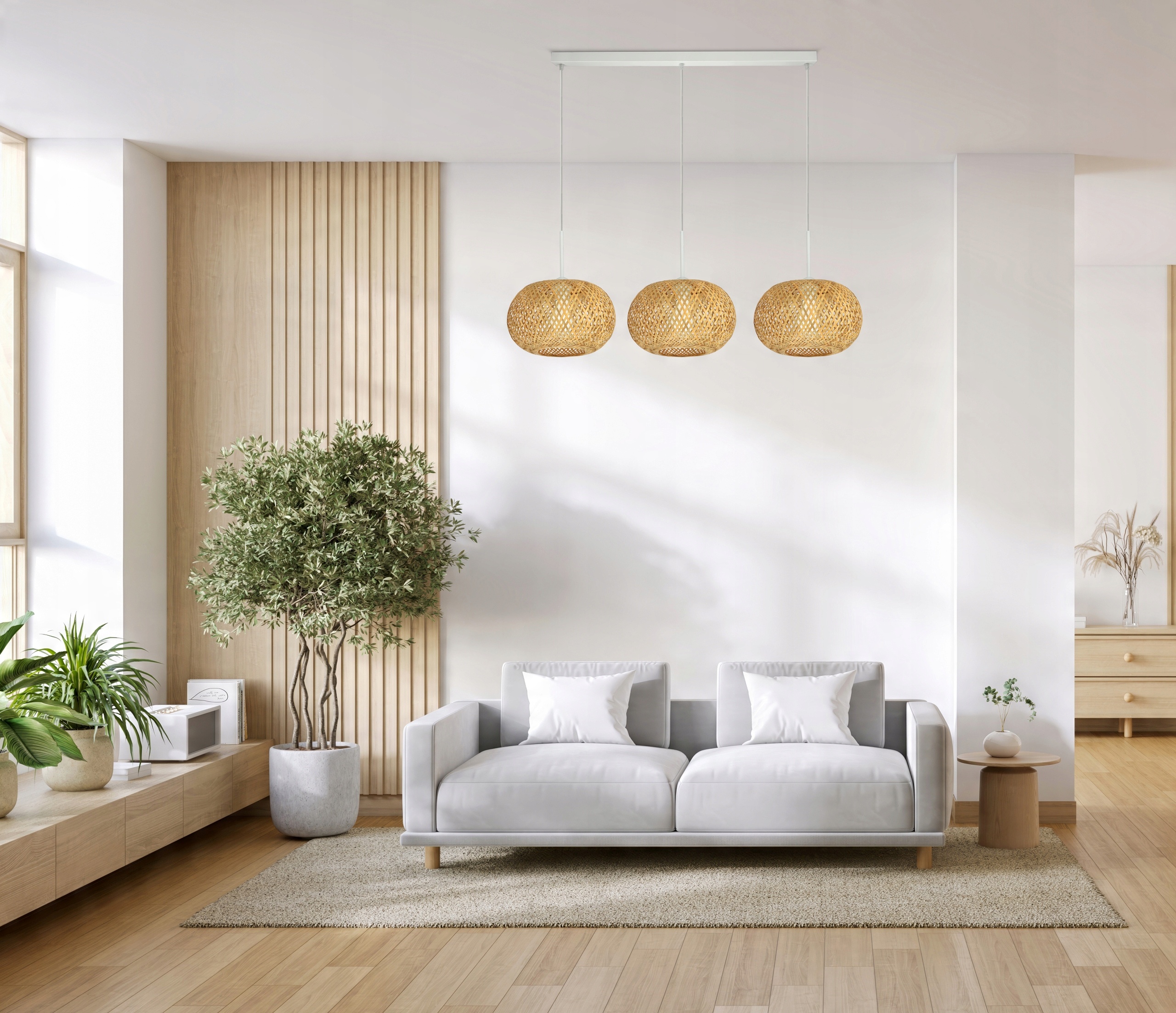 Lampa Sufitowa Wisząca Bambusowa Pleciona BOHO Naturalna 581-BZ3 LED E27