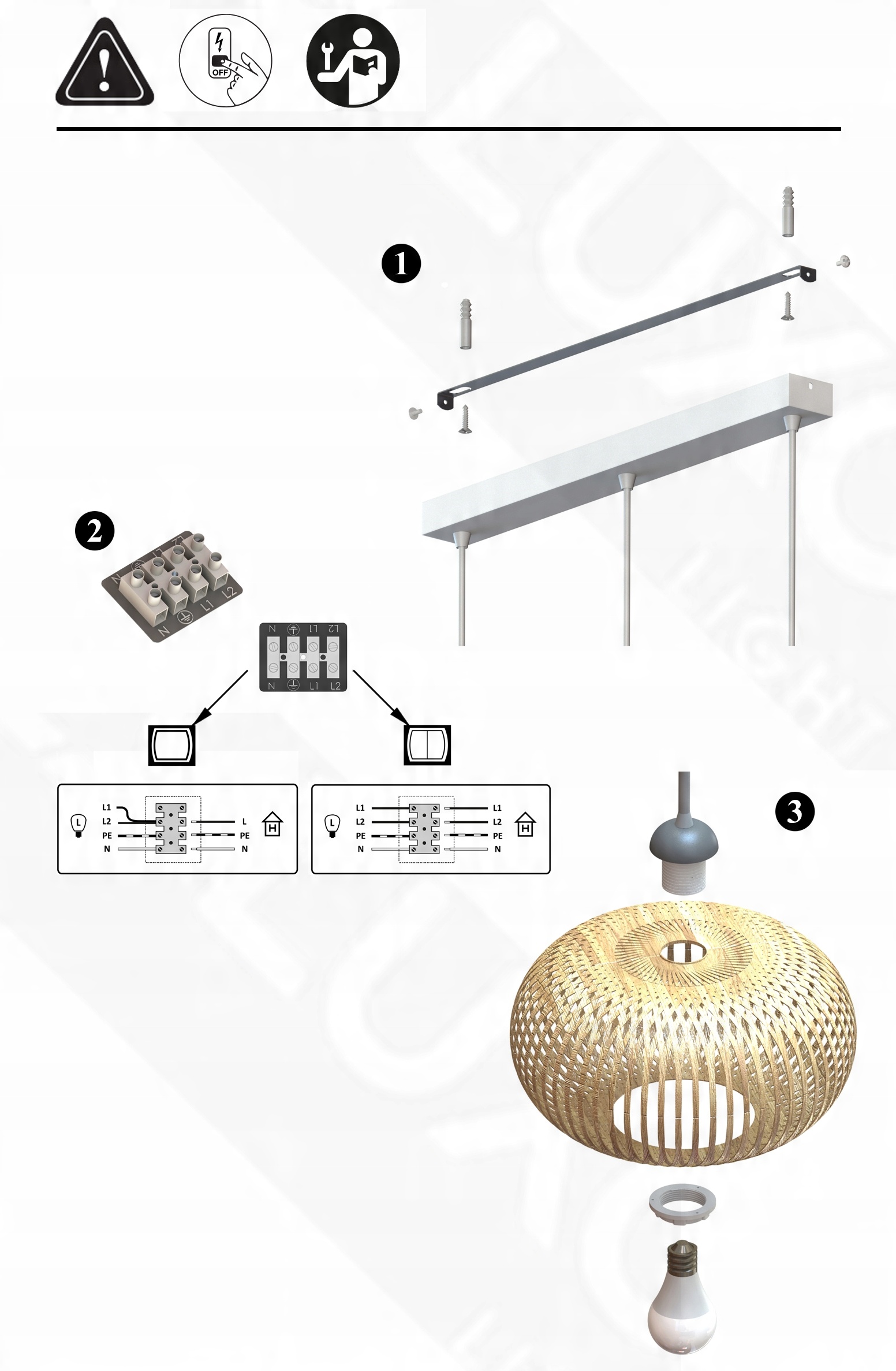 - Kompletną, złożoną lampę, gotową do montażu (klosze spakowane oddzielnie)