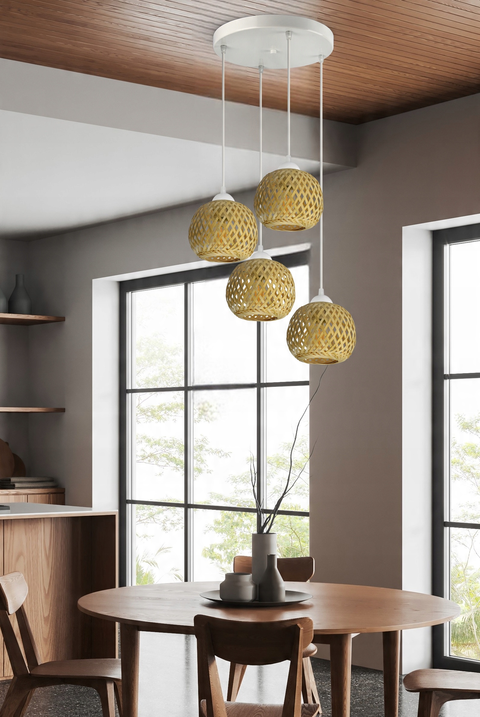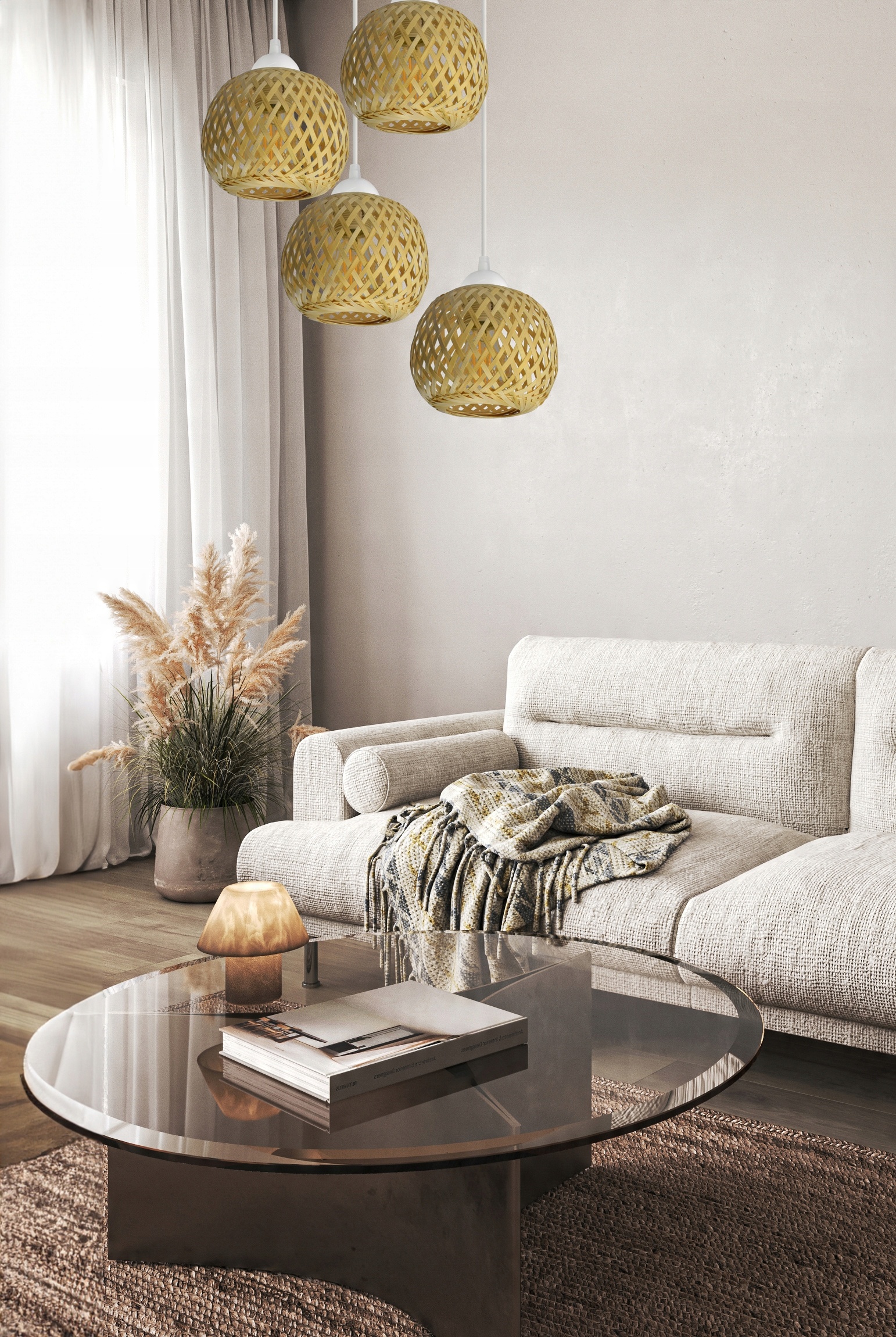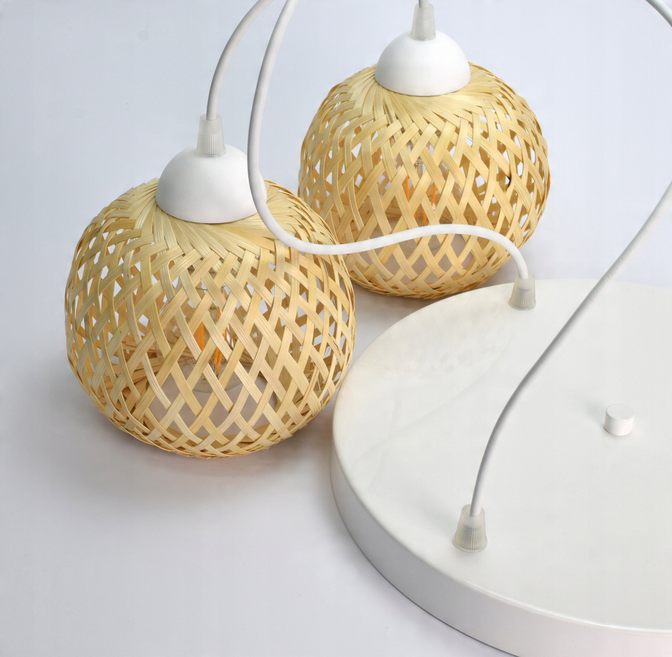Lampa Sufitowa Wisząca Bambusowa Pleciona BOHO Naturalna 583-EZ4 LED Biała