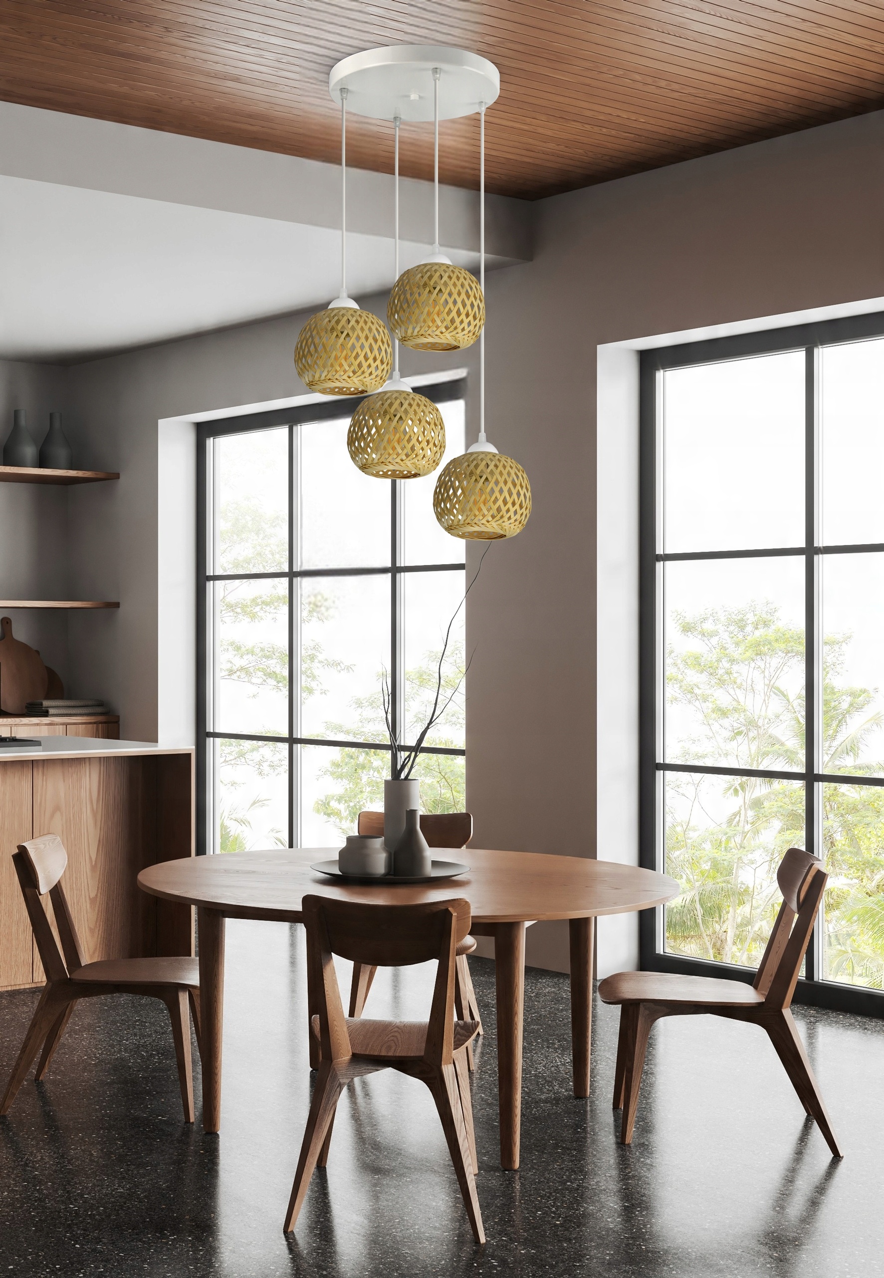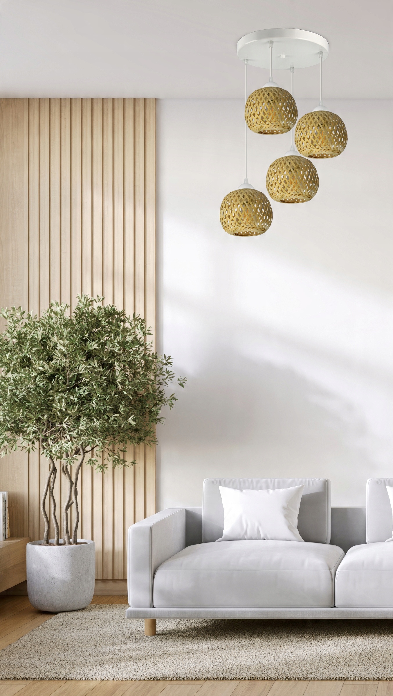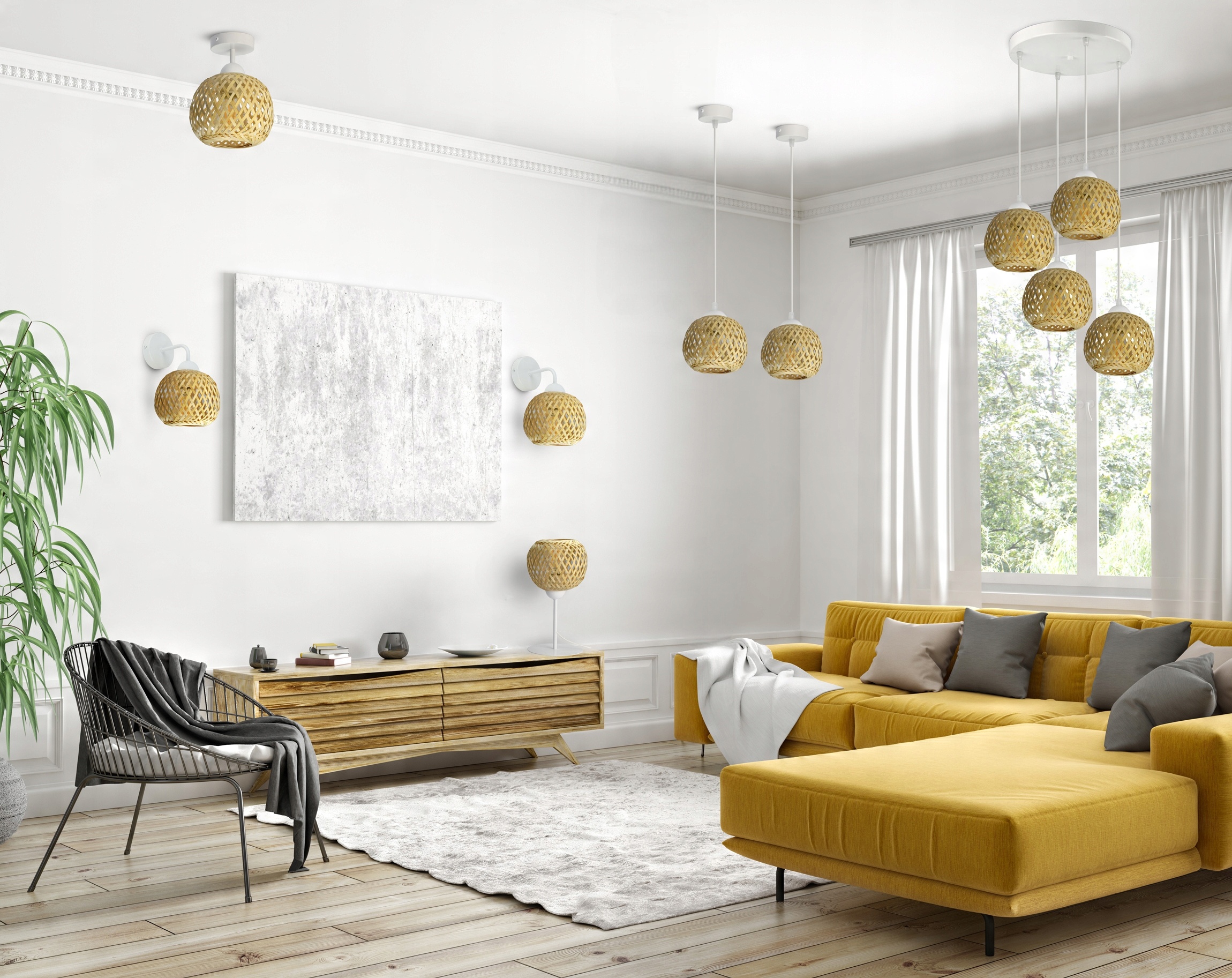 Lampa Sufitowa Wisząca Bambusowa Pleciona BOHO Naturalna 583-EZ4 LED Biała