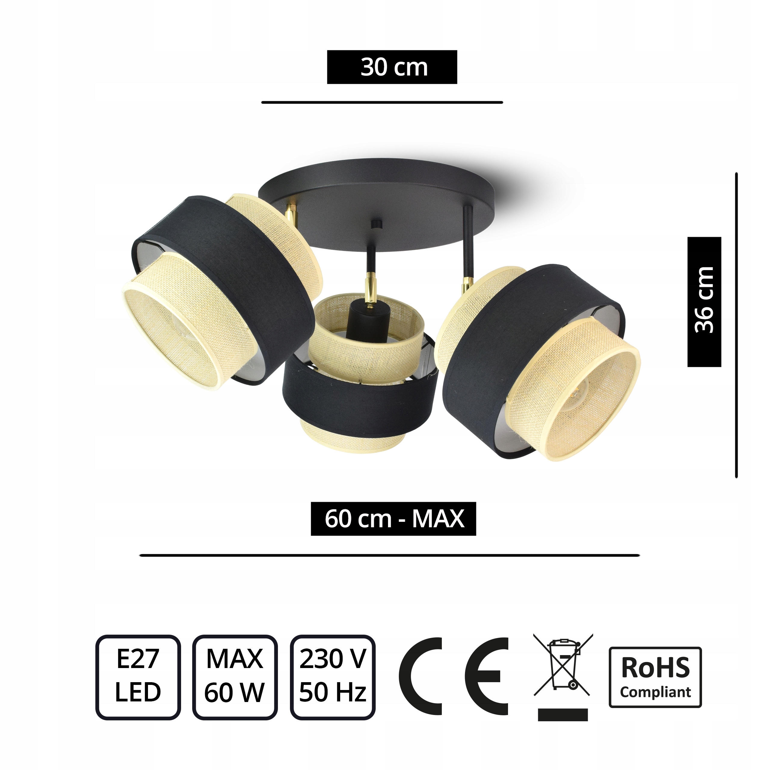 Zestaw nie zawiera żarówek, a także kołków rozporowych (należy dobrać odpowiednie do sufitu).