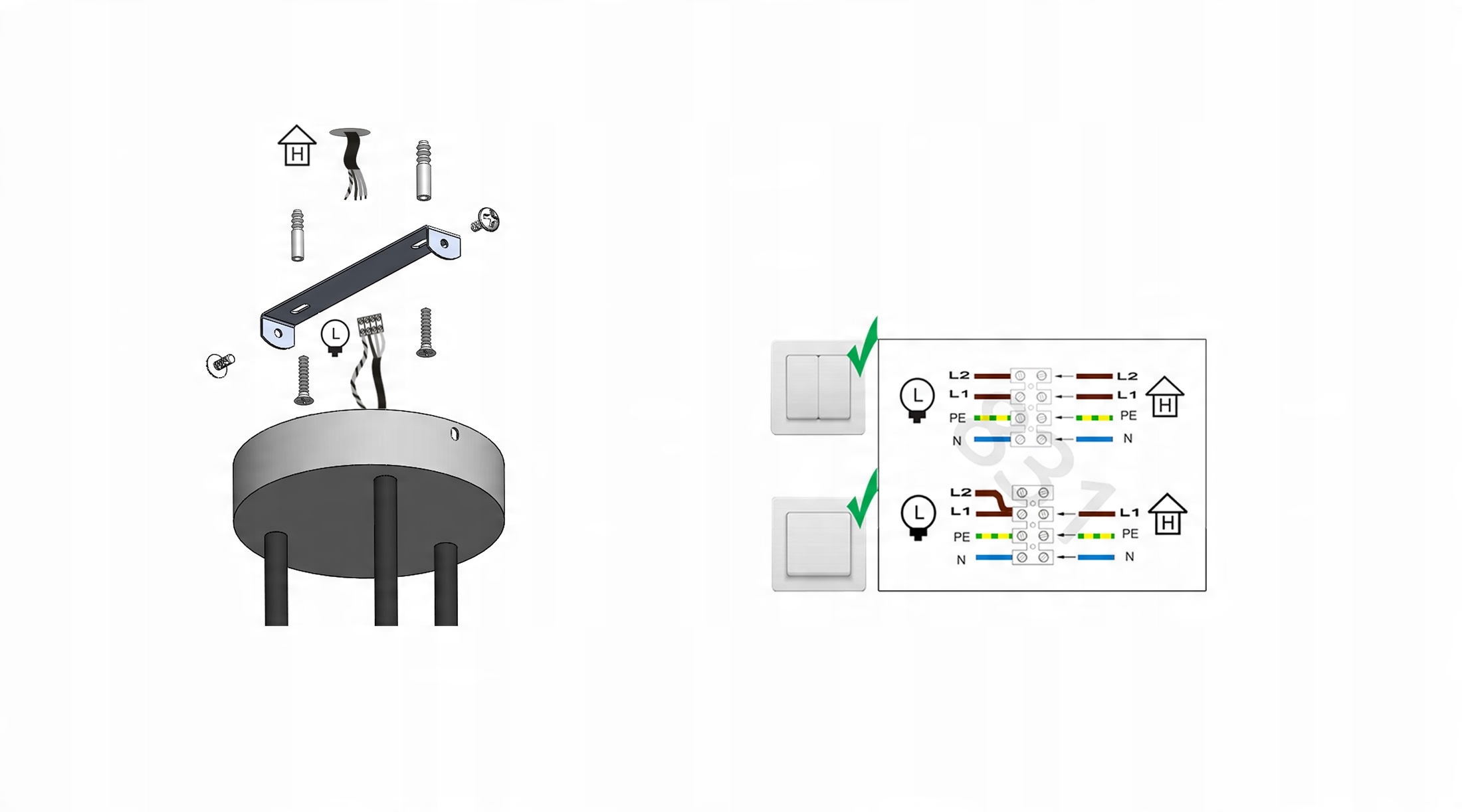 - Zestaw nie zawiera żarówek oraz kołków rozporowych do montażu