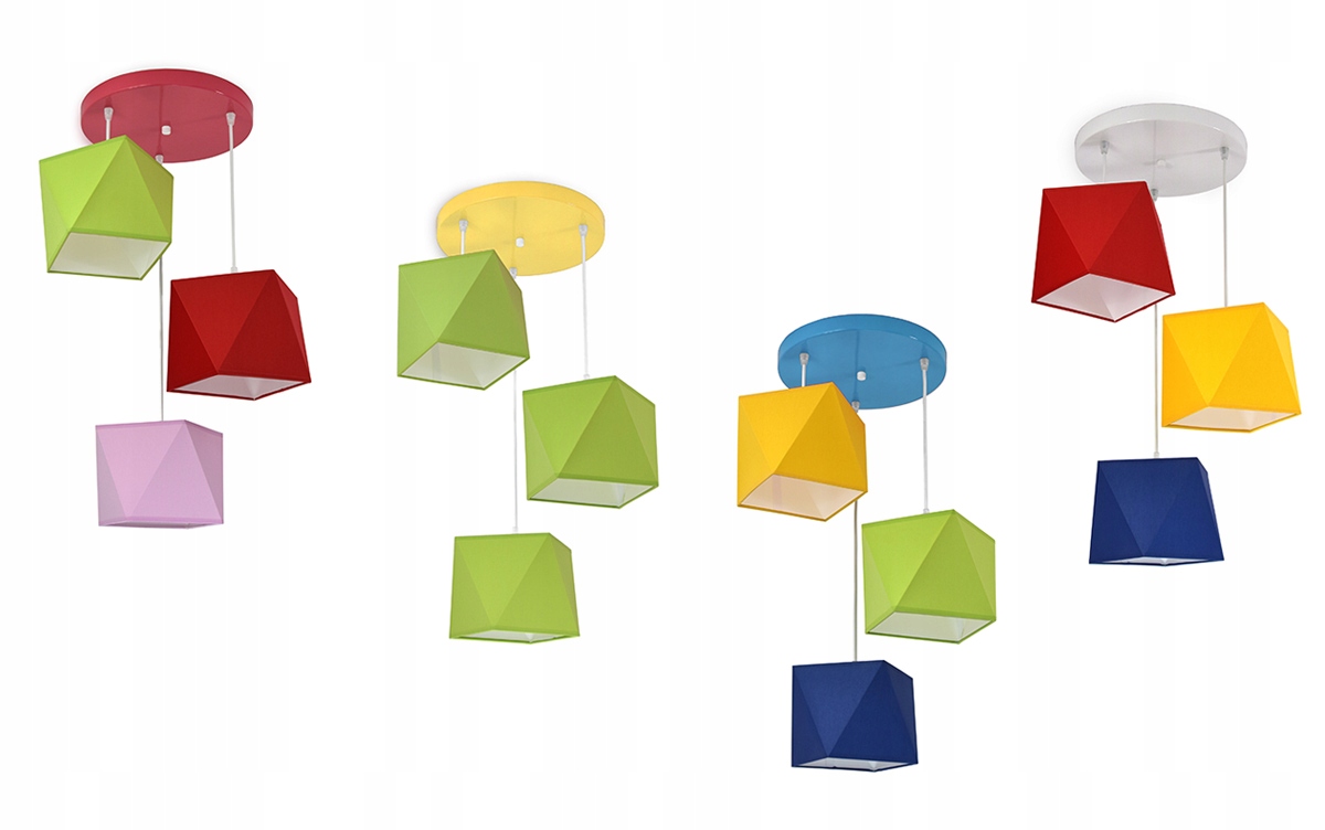 Kolorowa lampa wisząca z serii Diament nr. kat 299-E3 przeznaczona do pokoju dziecięcego.