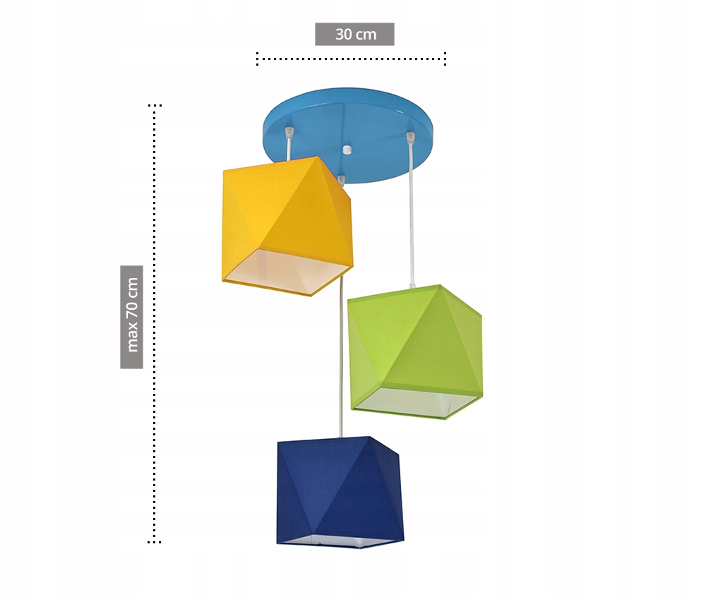 - wymiary: wysokość całkowita do 70 cm , Średnica podsufitki: 30 cm,