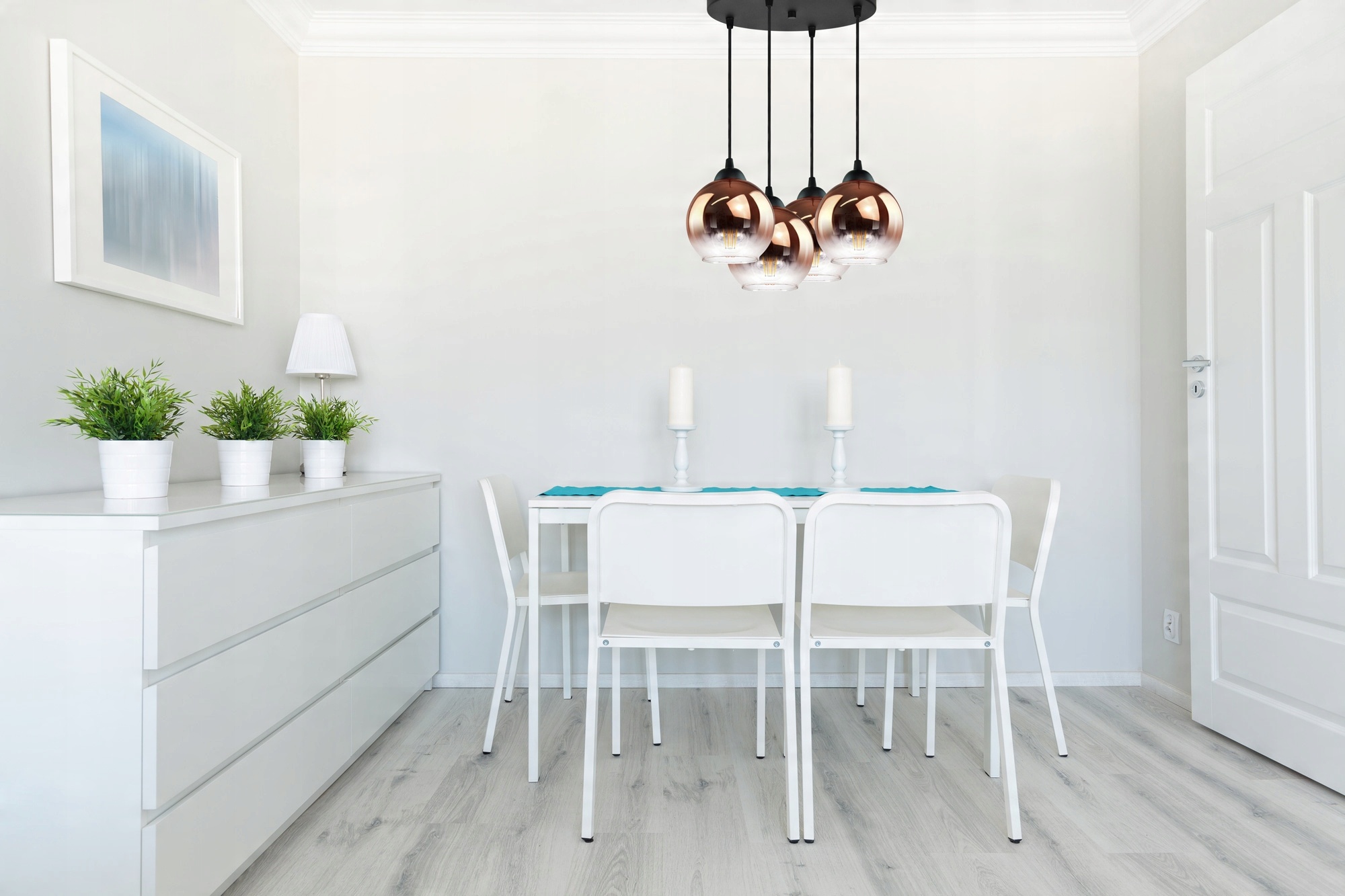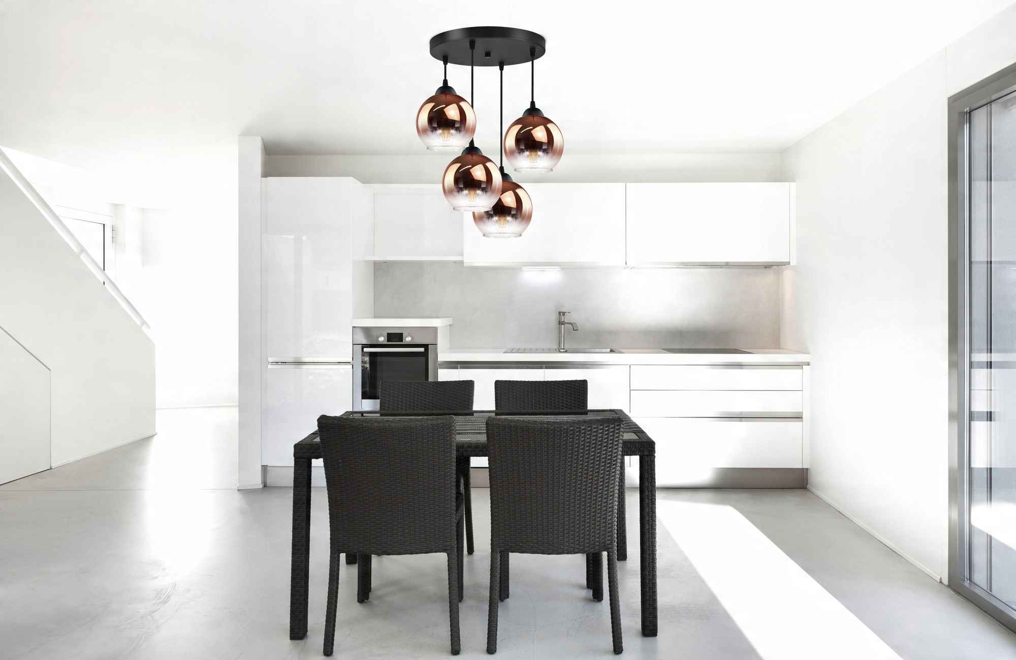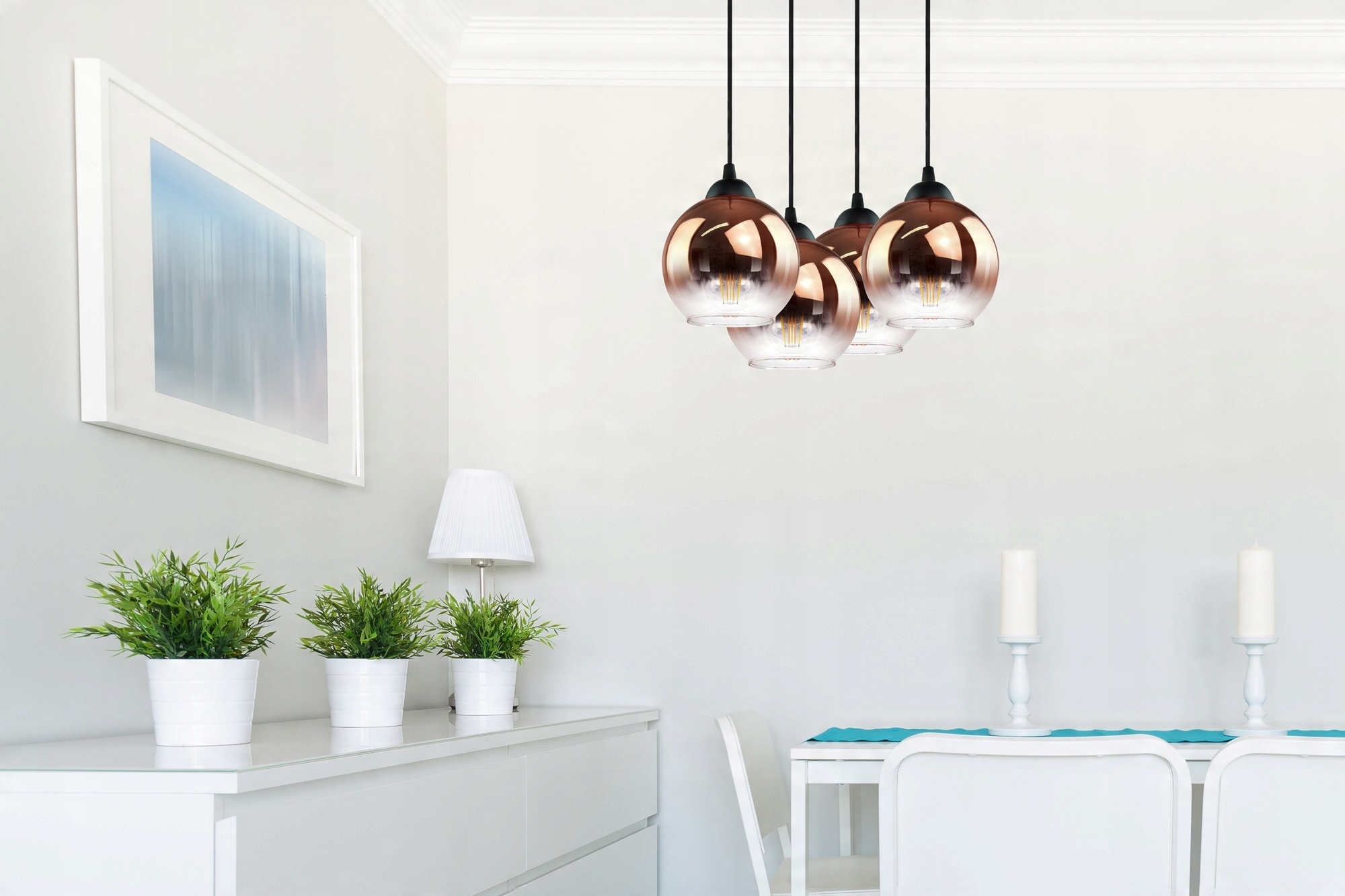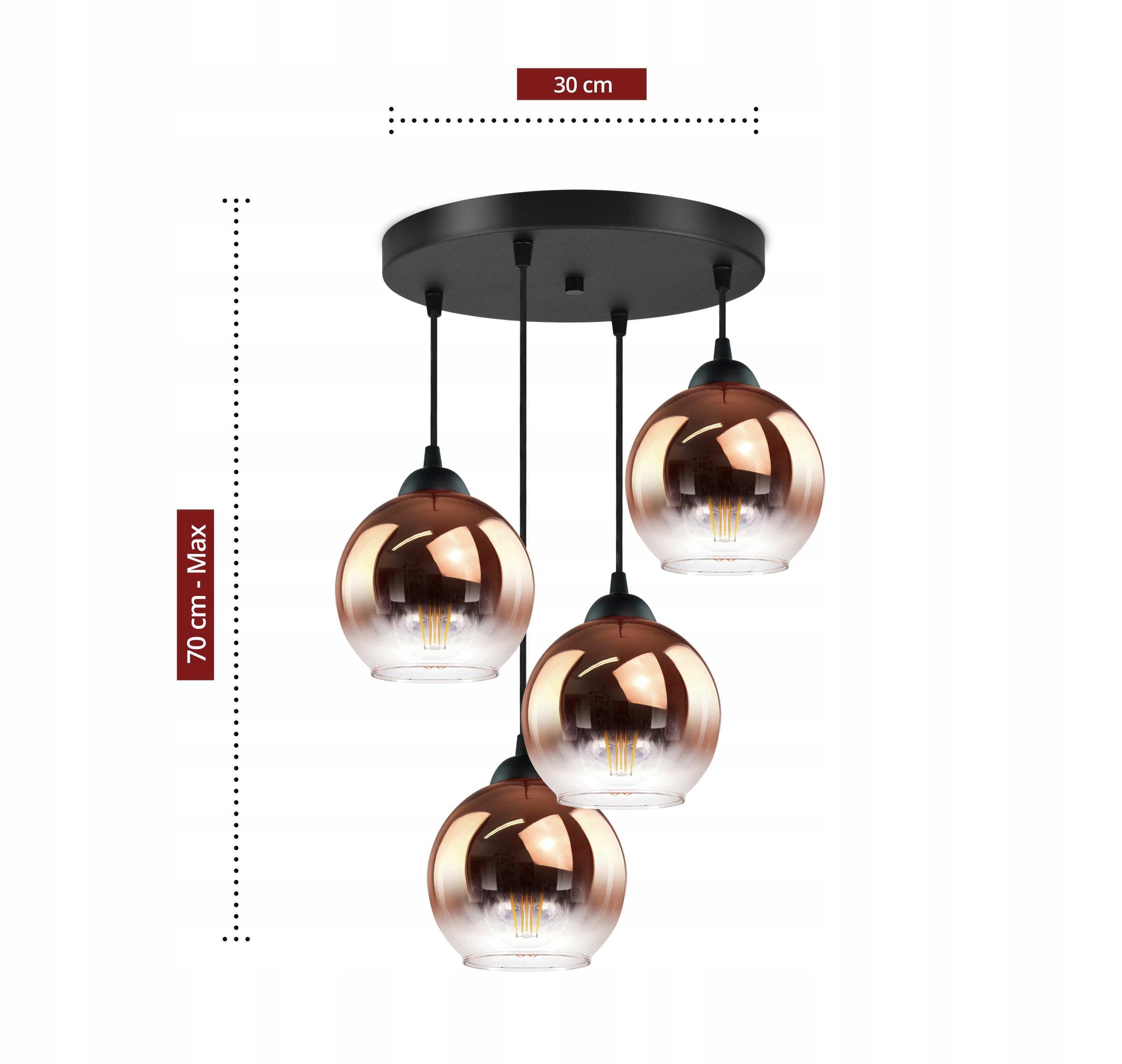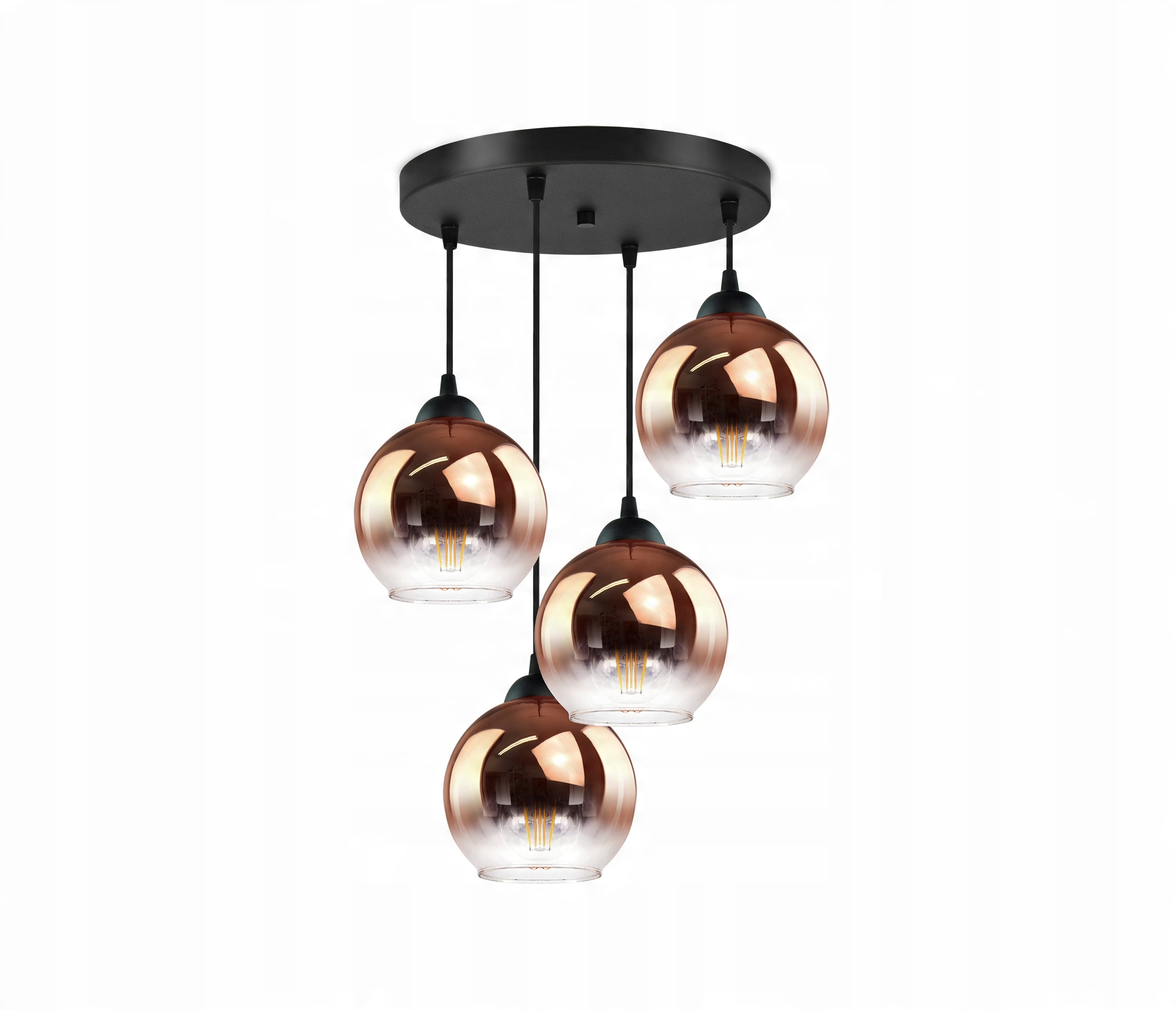 Lampa Wisząca Cztery Kule Miedziane Transparentne