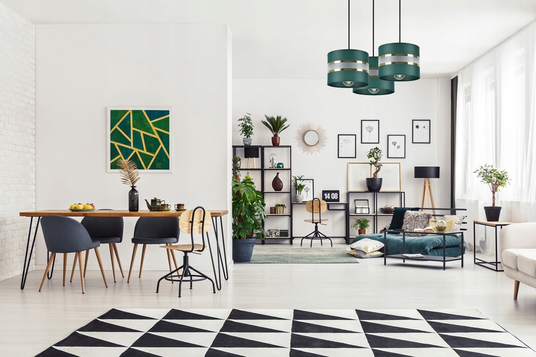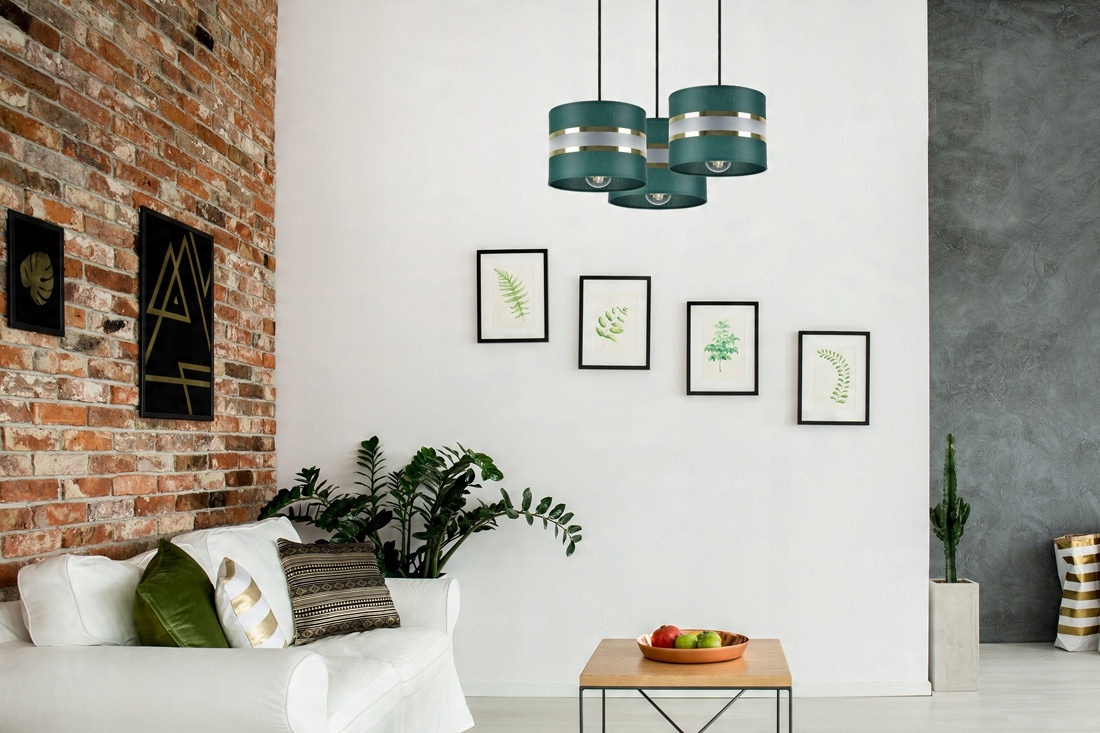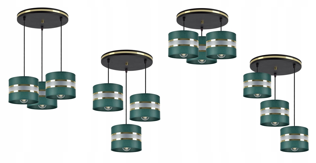 - Kolor abażurów: Butelkowa Zieleń + złote pasy
