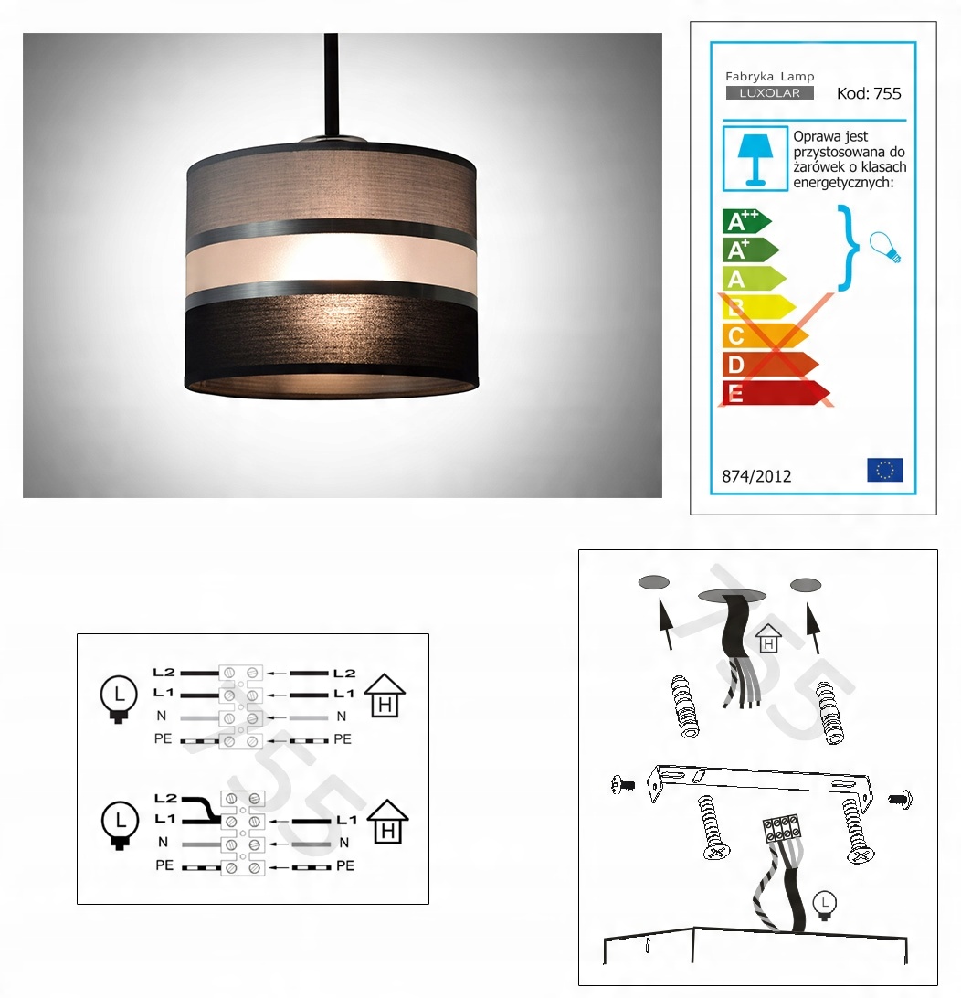 - Wybierz kolor abażurów: Czarny, Szary, Biały, Biało - Czarny, Szaro - Czarny.