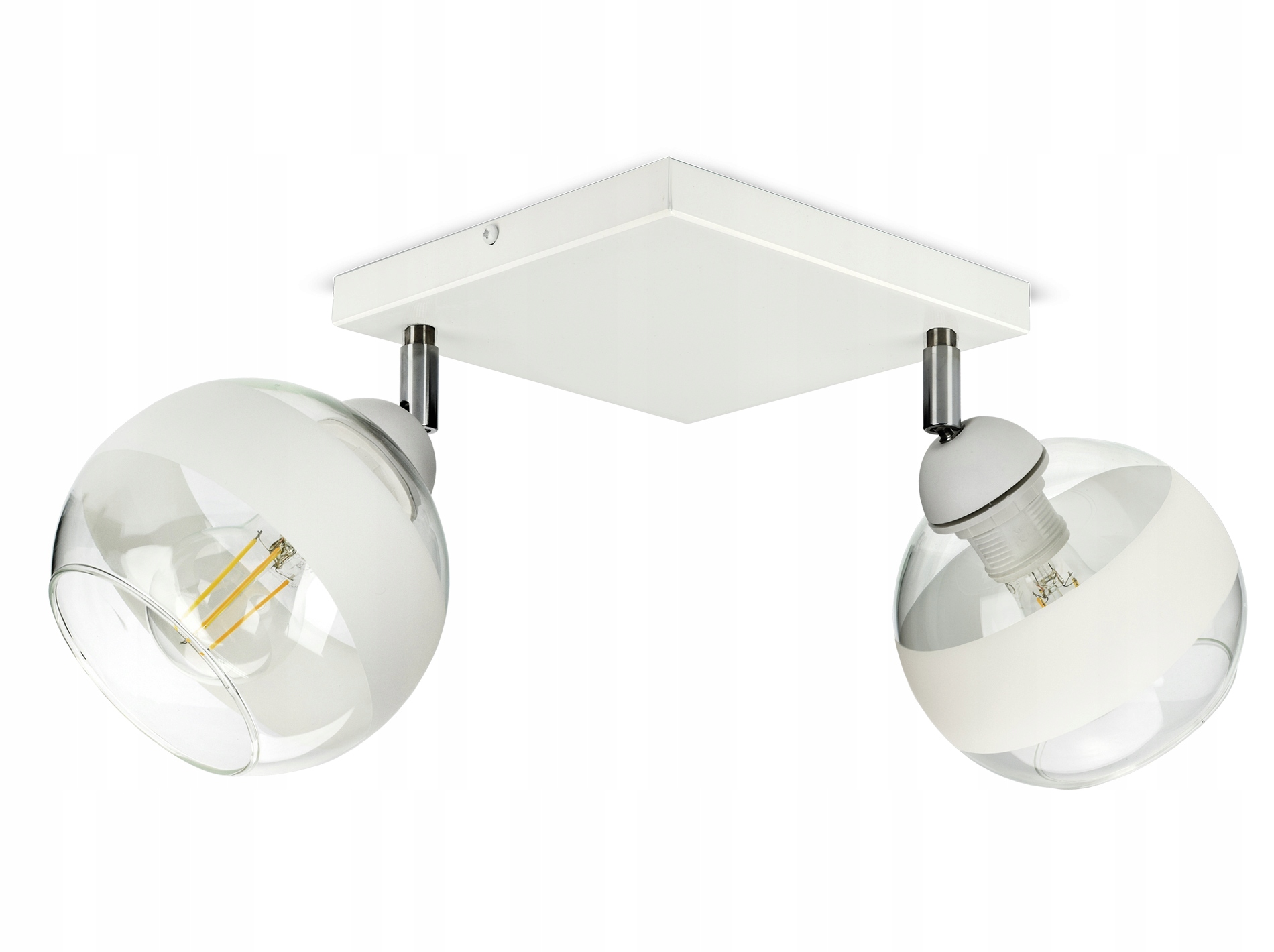 ✅ Lampa wyposażona w szklane klosze w kształcie kuli z białym pasem w części centralnej.