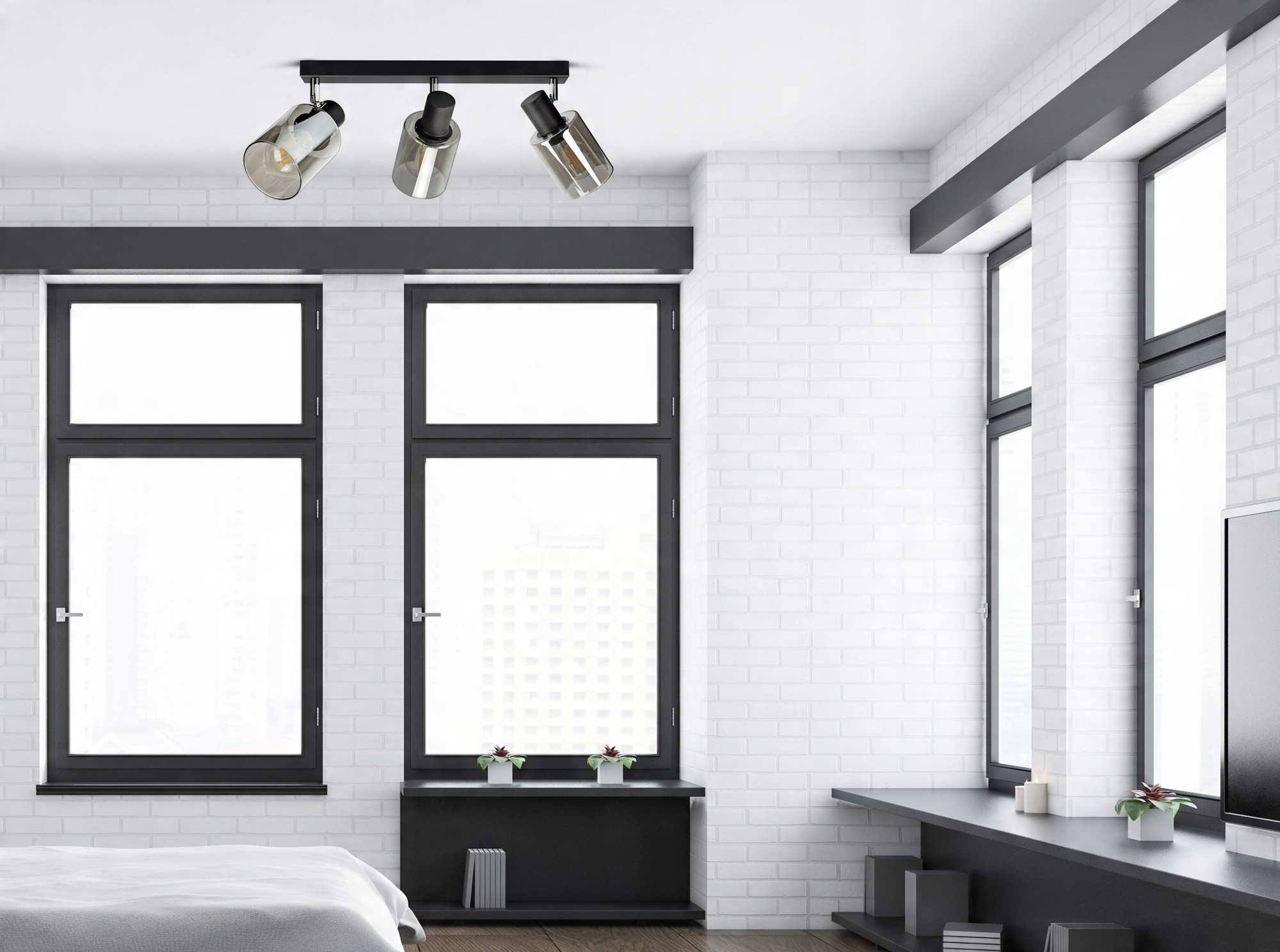 Oprawa natynkowa, metalowa ze szklanymi kloszami mająca zastosowanie jako oświetlenie wewnętrzne, z wyłączeniem miejsc o podwyższonej wilgotności.