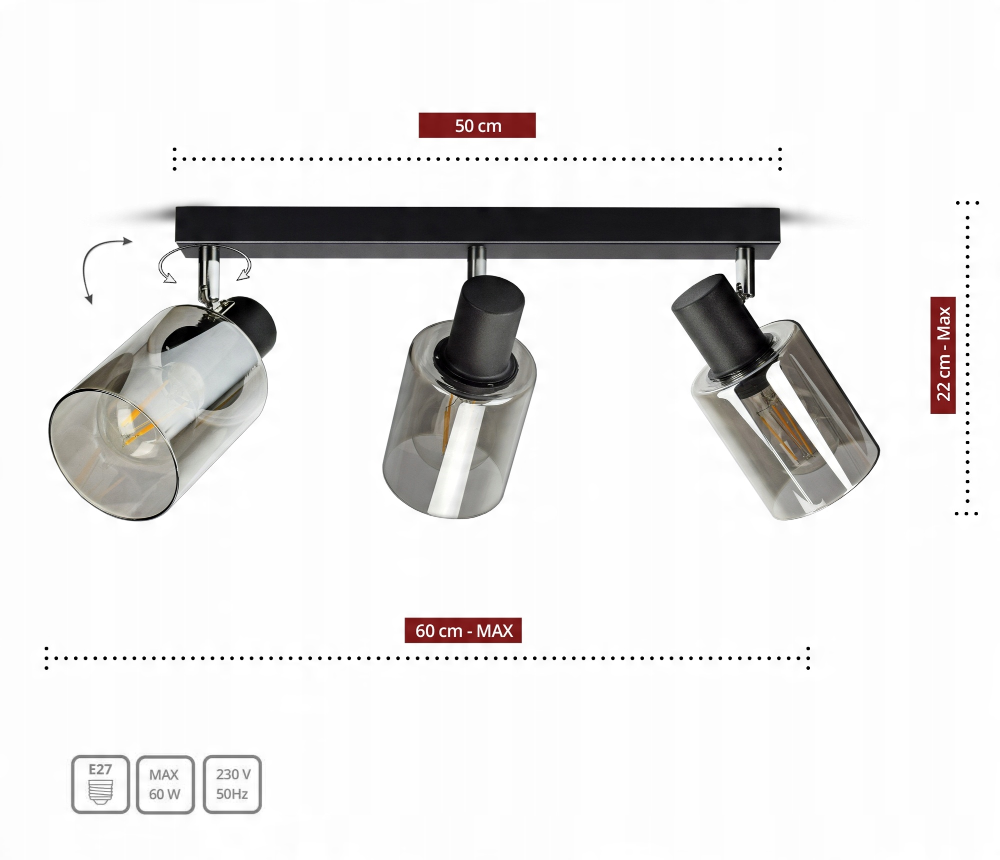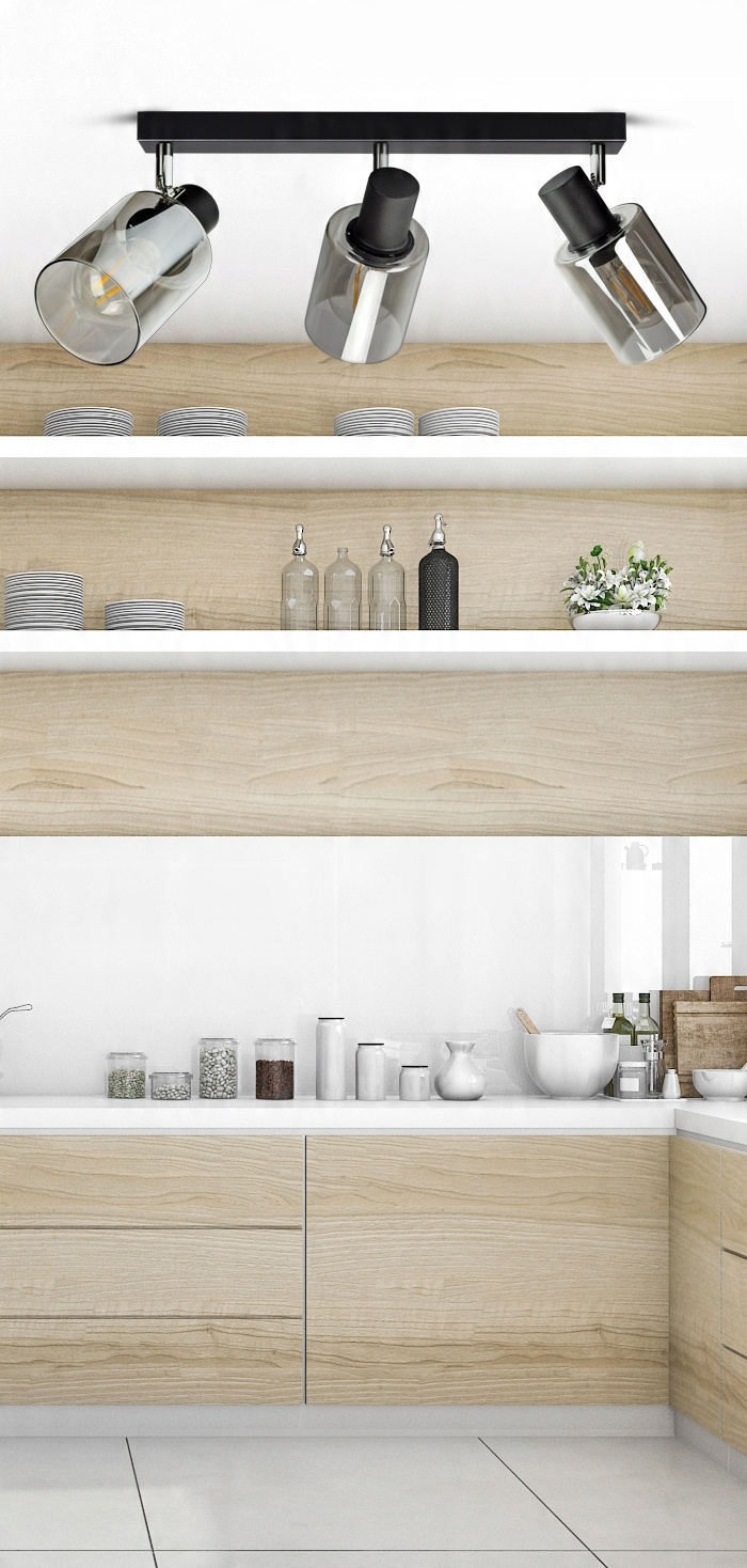 ✅ Lampa wyposażona w szklane, dymione klosze w kształcie tub,