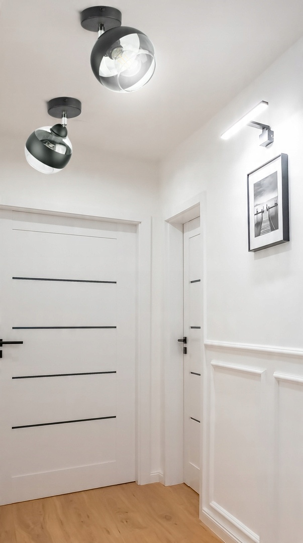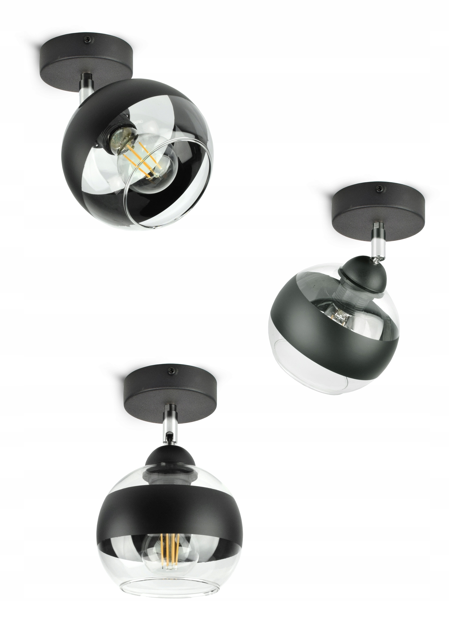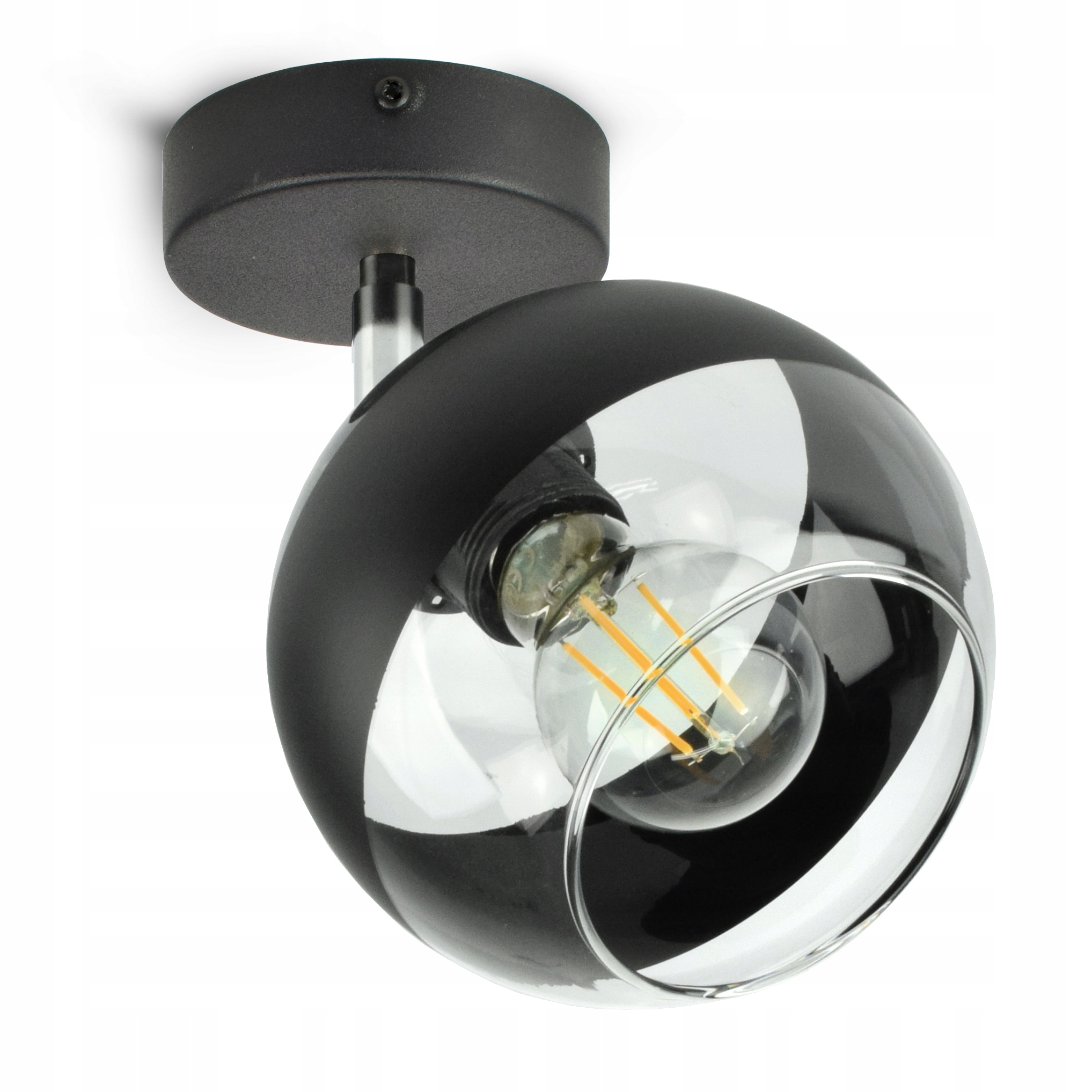 ✅ Lampa wyposażona w szklany klosz w kształcie kuli z Czarnym pasem w części centralnej.