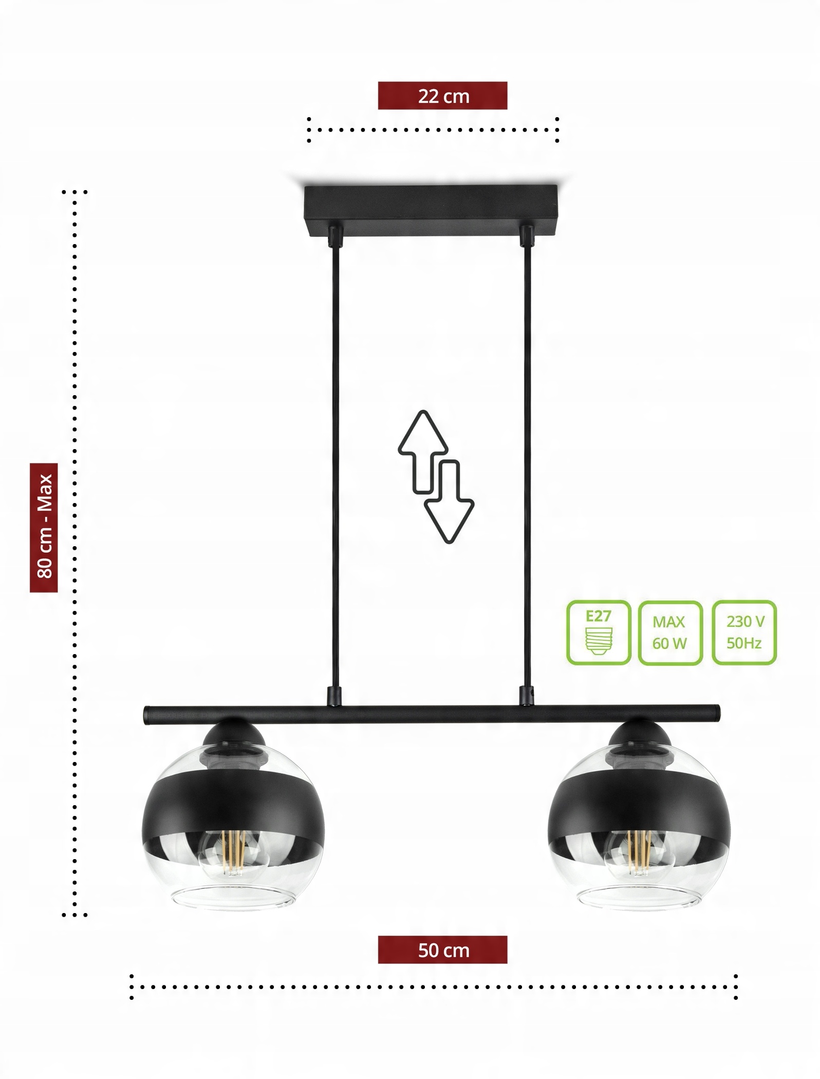 ✅ Regulacja wysokości kloszy,
