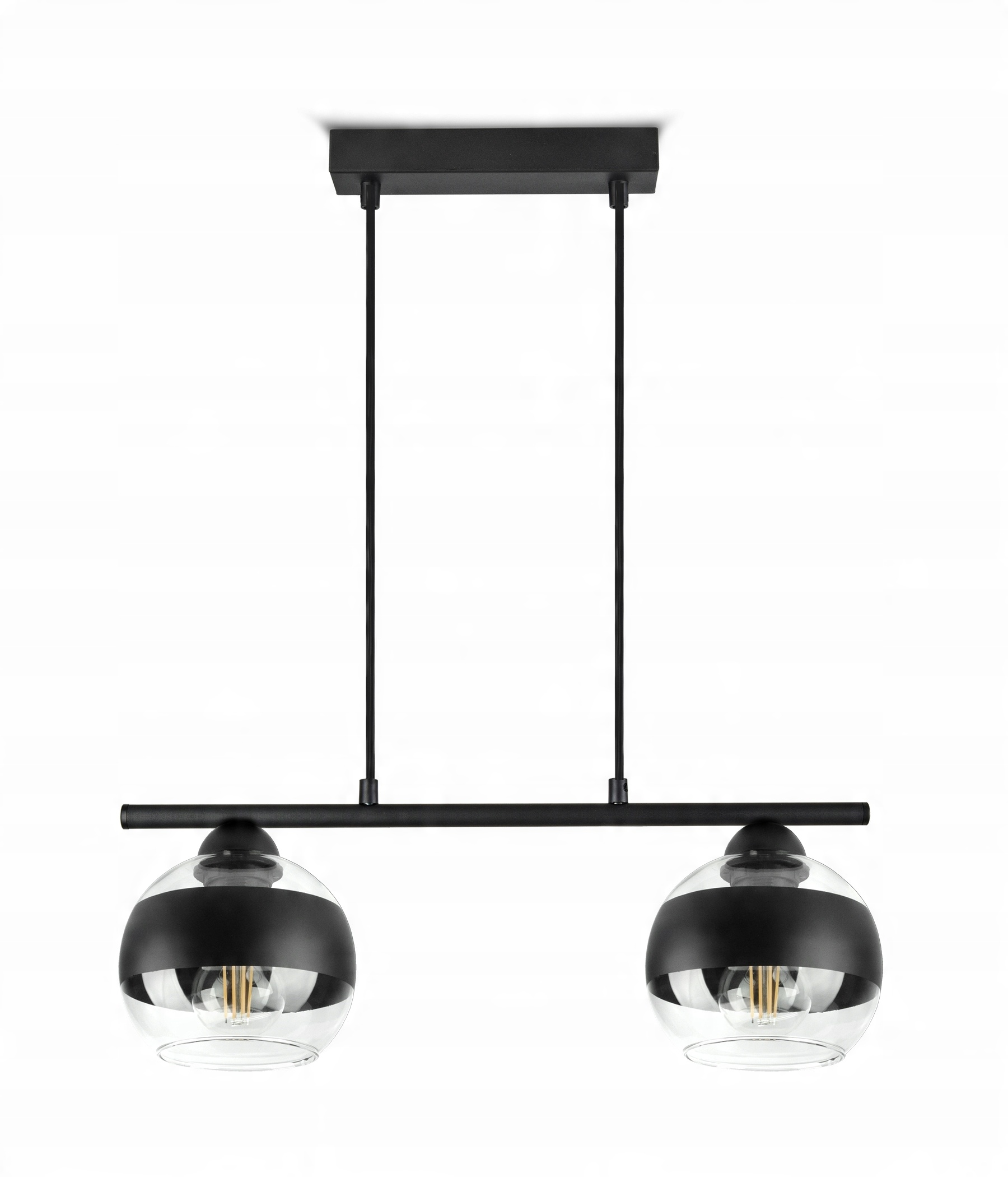 ✅ Lampa wyposażona w szklane klosze w kształcie kuli z Czarnym pasem w części centralnej.