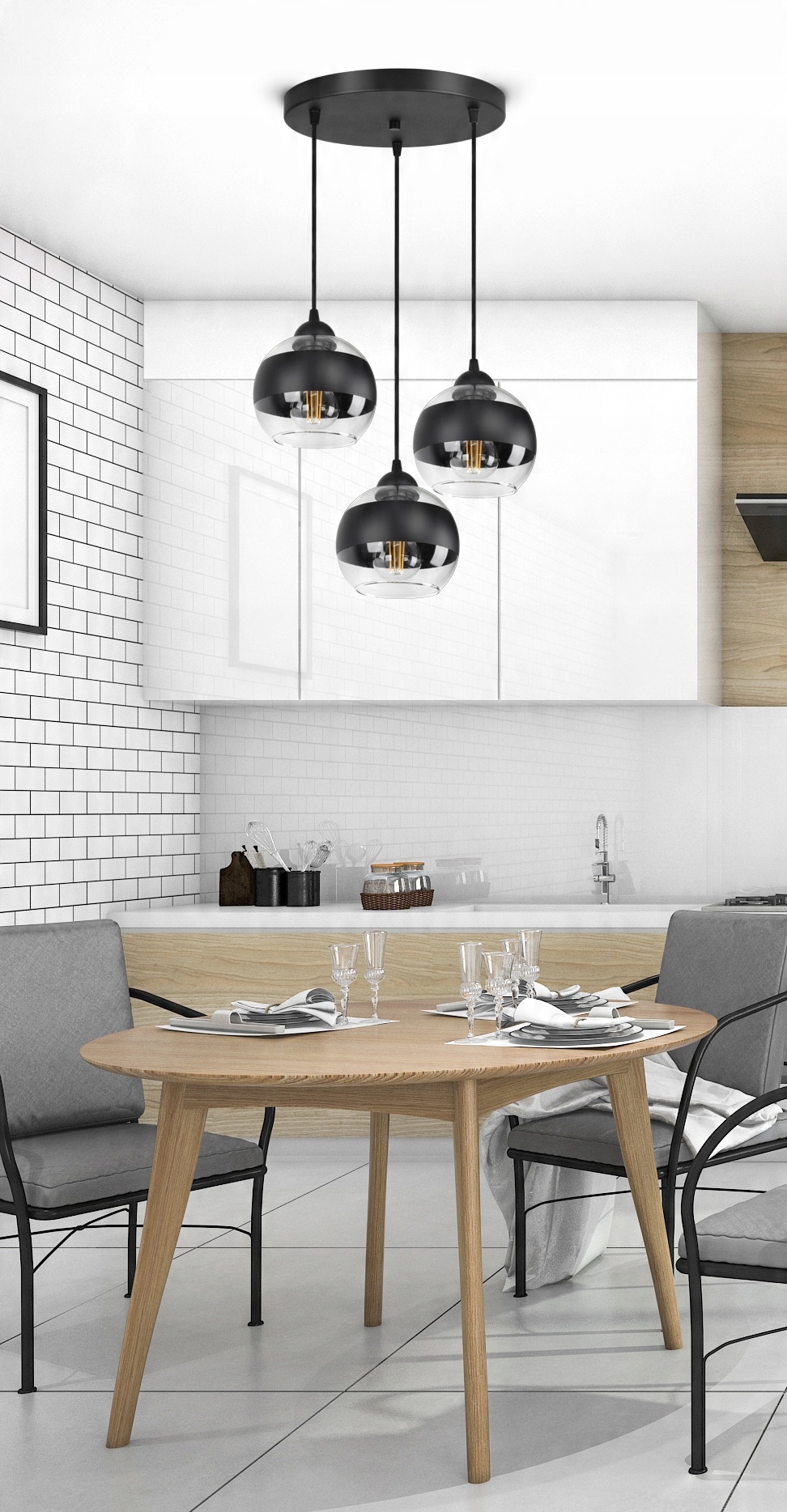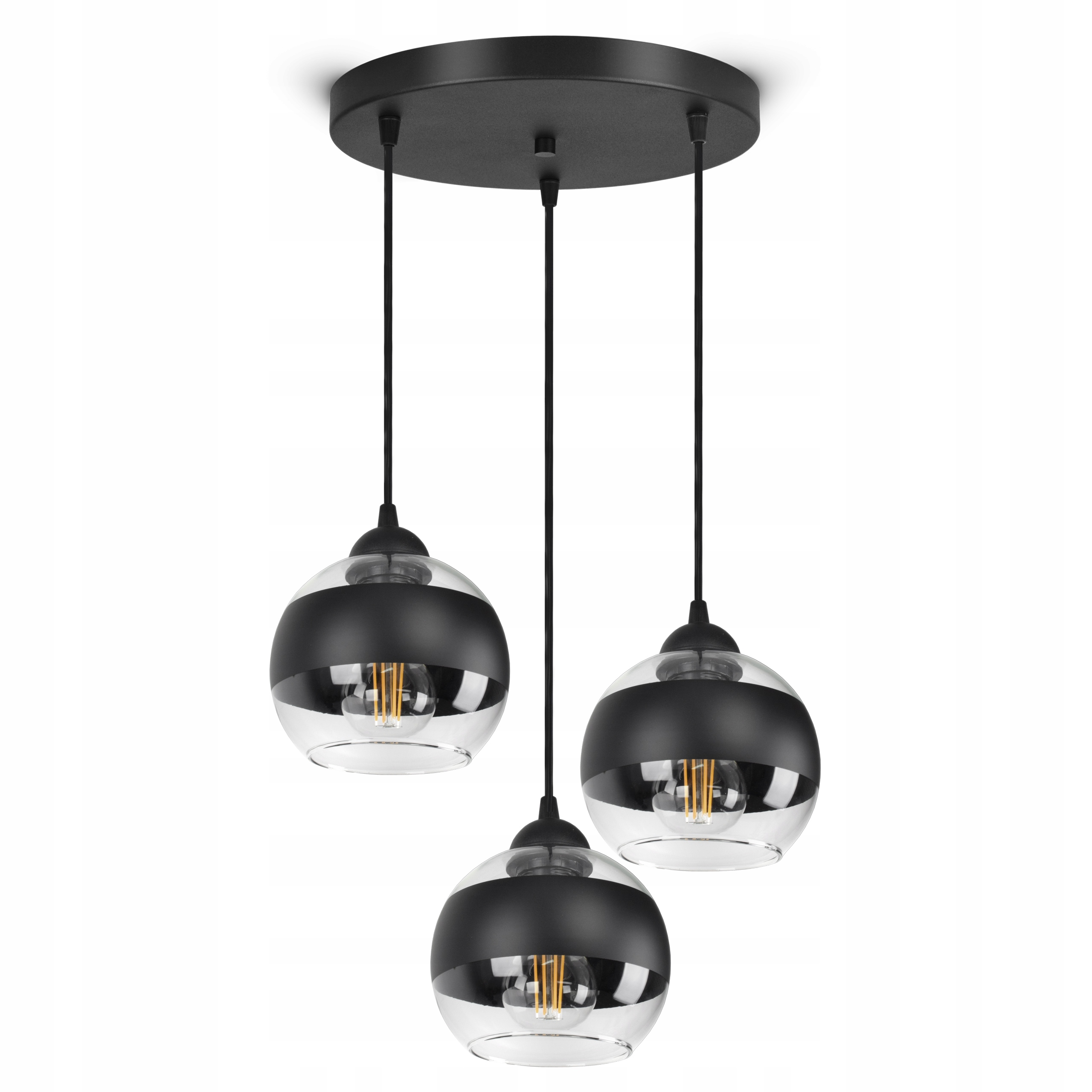 ✅ Lampa wyposażona w szklane klosze w kształcie kuli z Czarnym pasem w części centralnej.