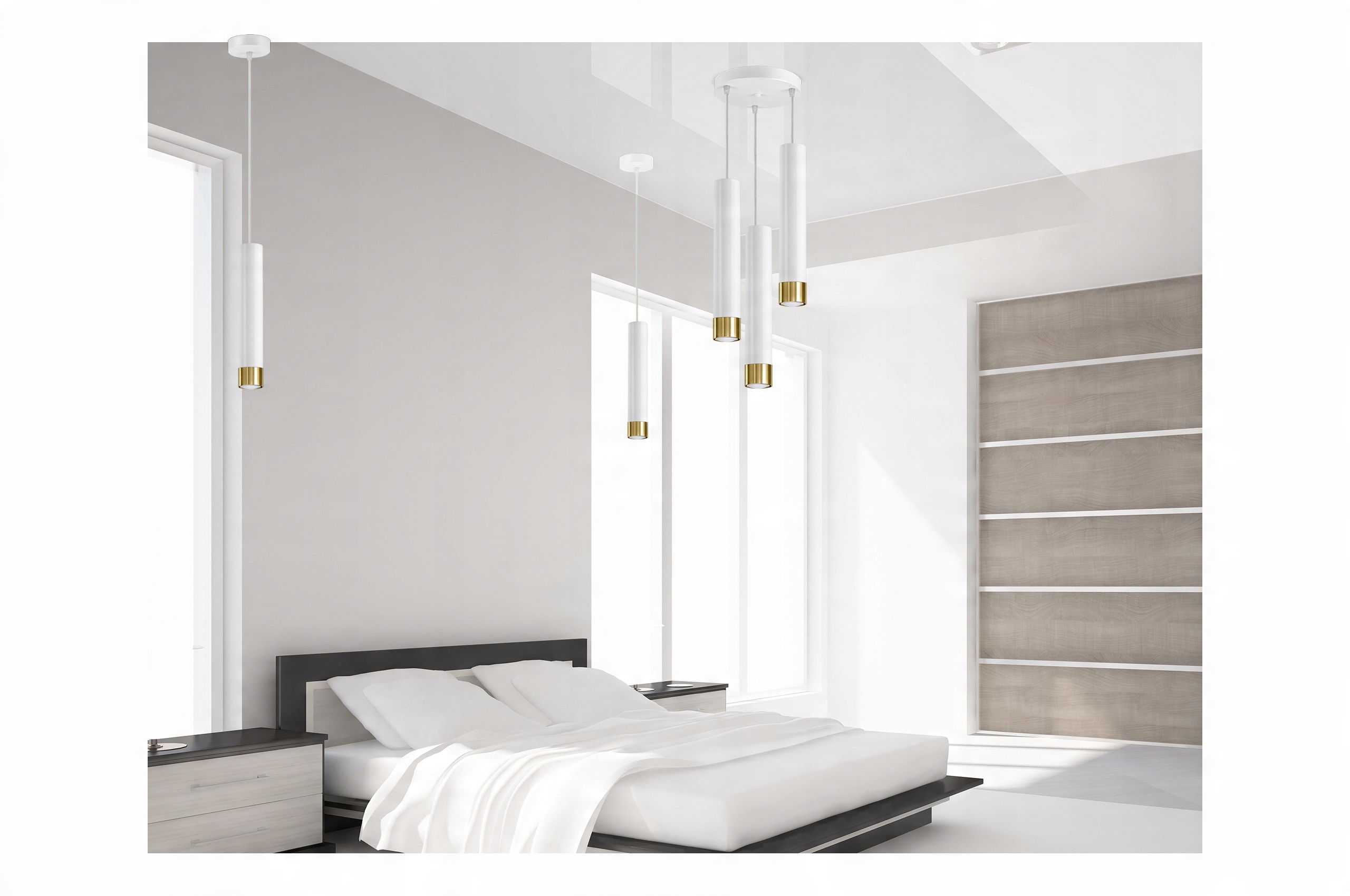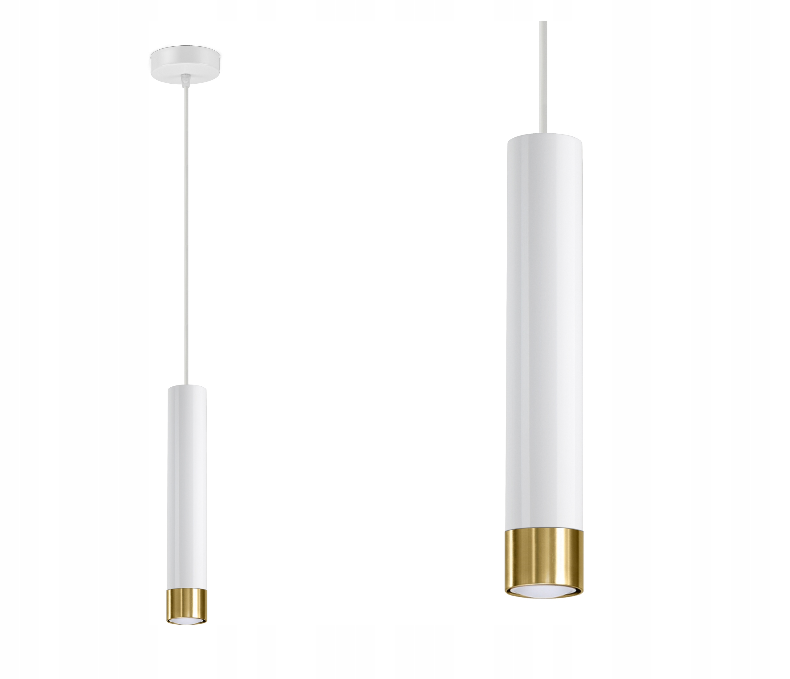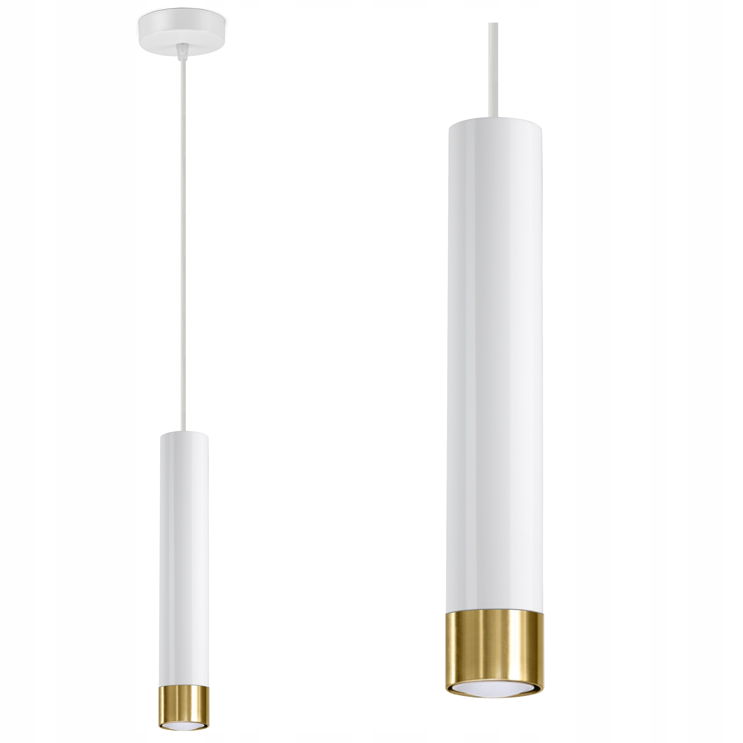 Lampa Wisząca Tuba Metal Biała Złota LED GU10