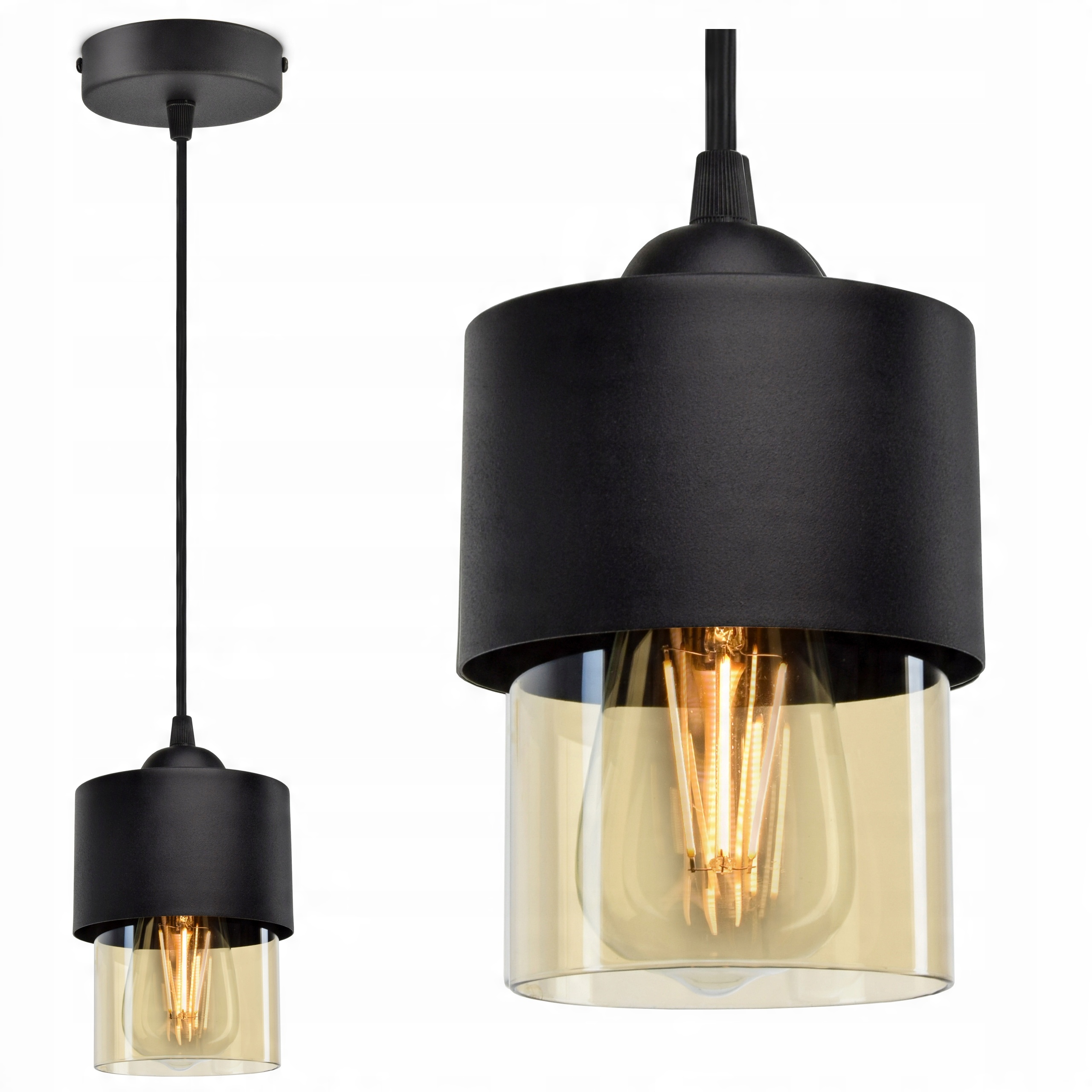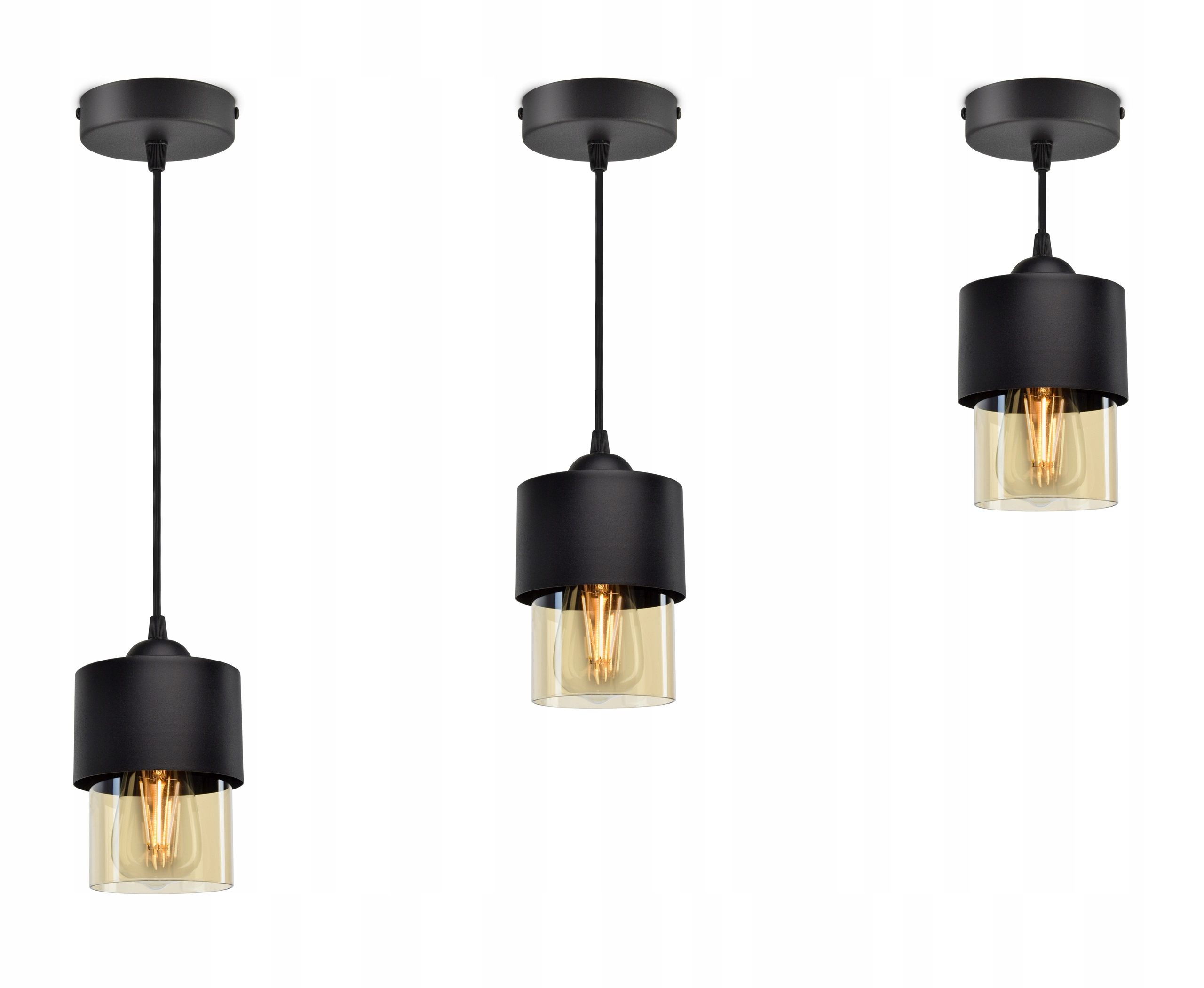 Lampa Wisząca Żyrandol Klosz Metal Szkło Miód LED