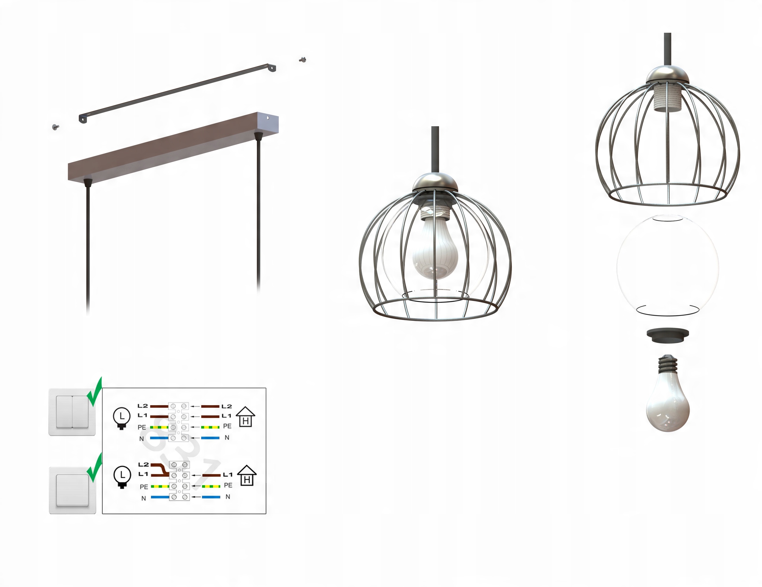 Zestaw nie zawiera żarówek ani kołków rozporowych (należy dobrać odpowiednie do sufitu)