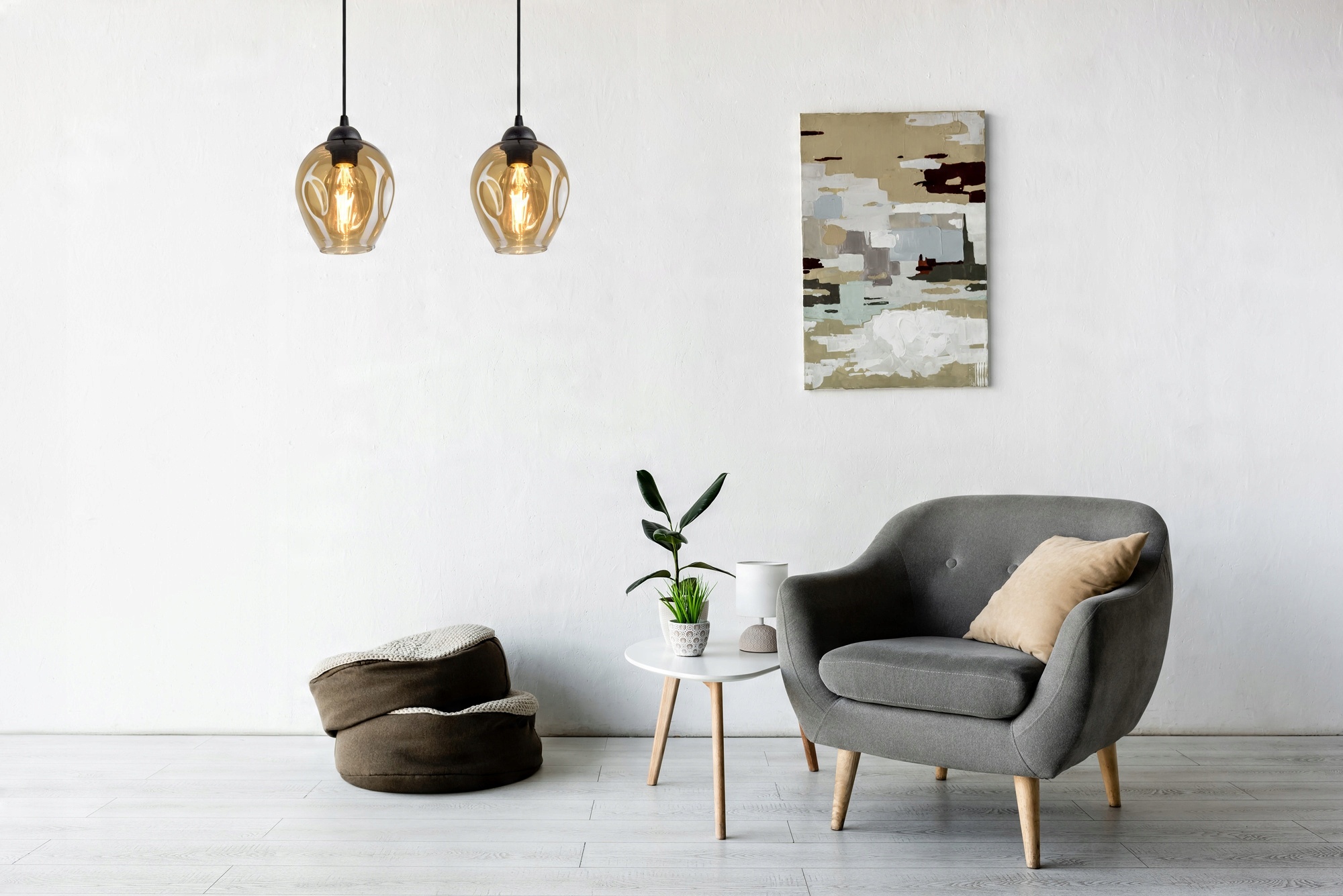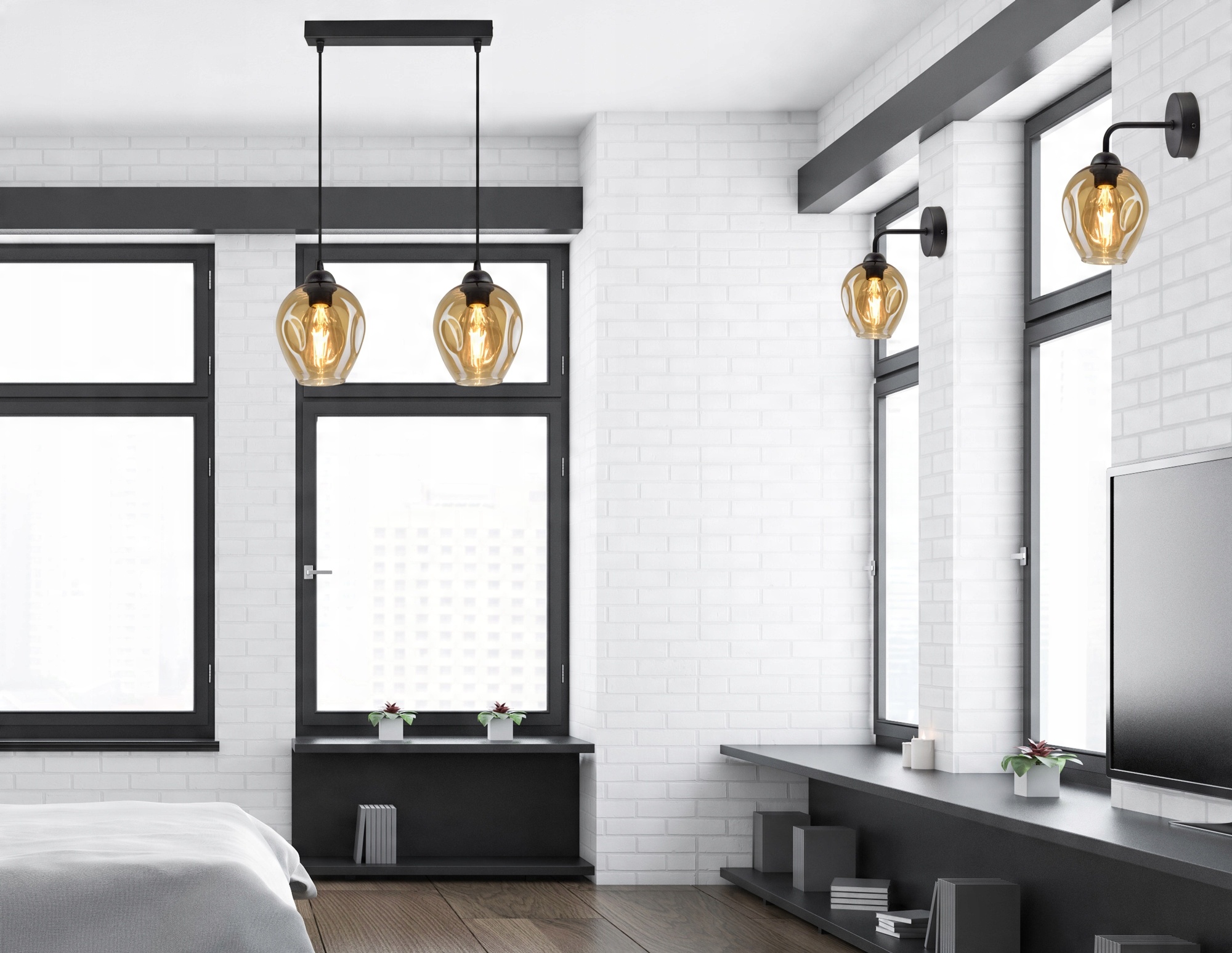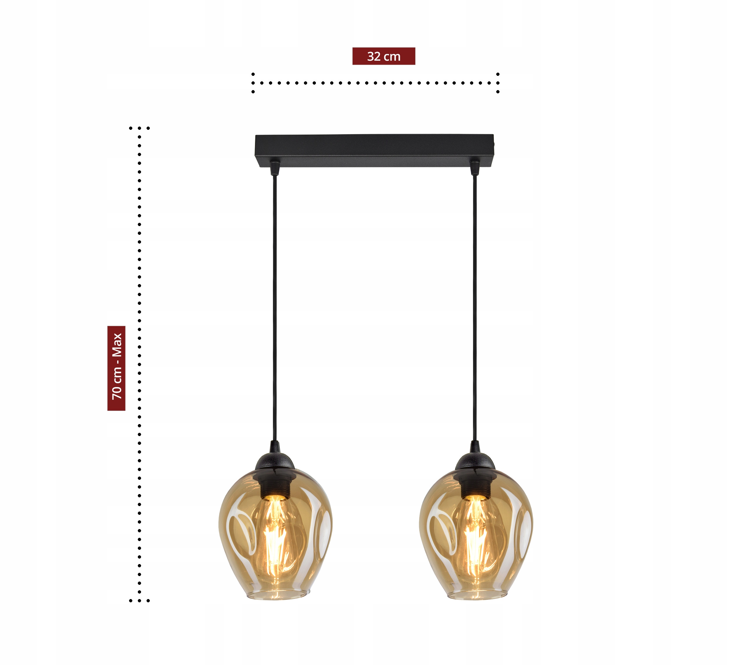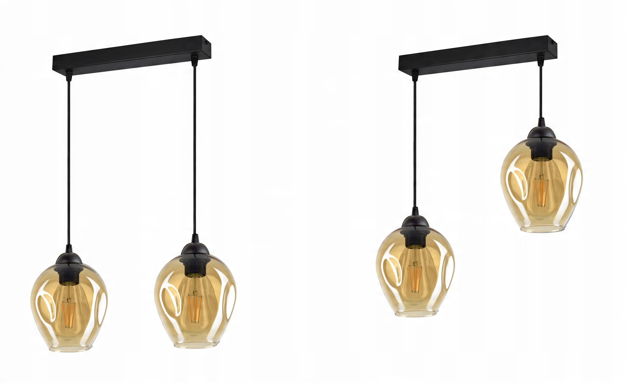 Lampa Wisząca Żyrandol Plafon 2 Klosze Miód LED