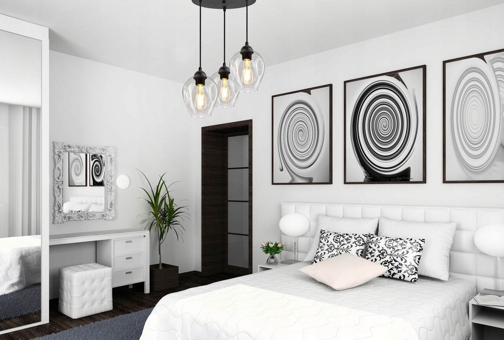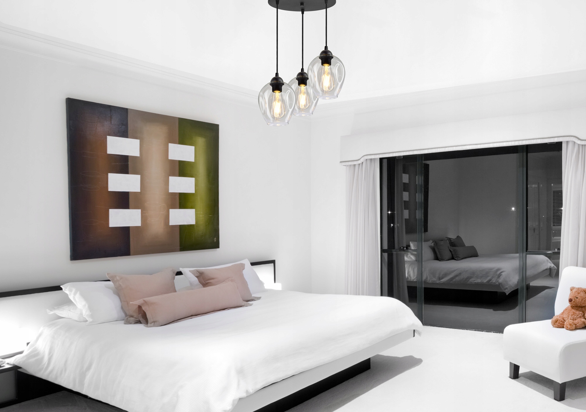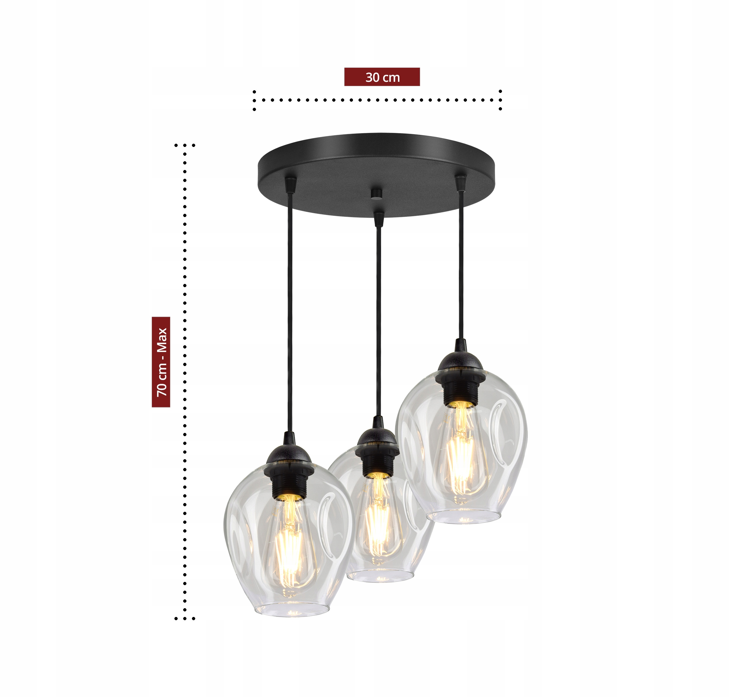 Lampa Wisząca Żyrandol Plafon 3 Klosze Transparent