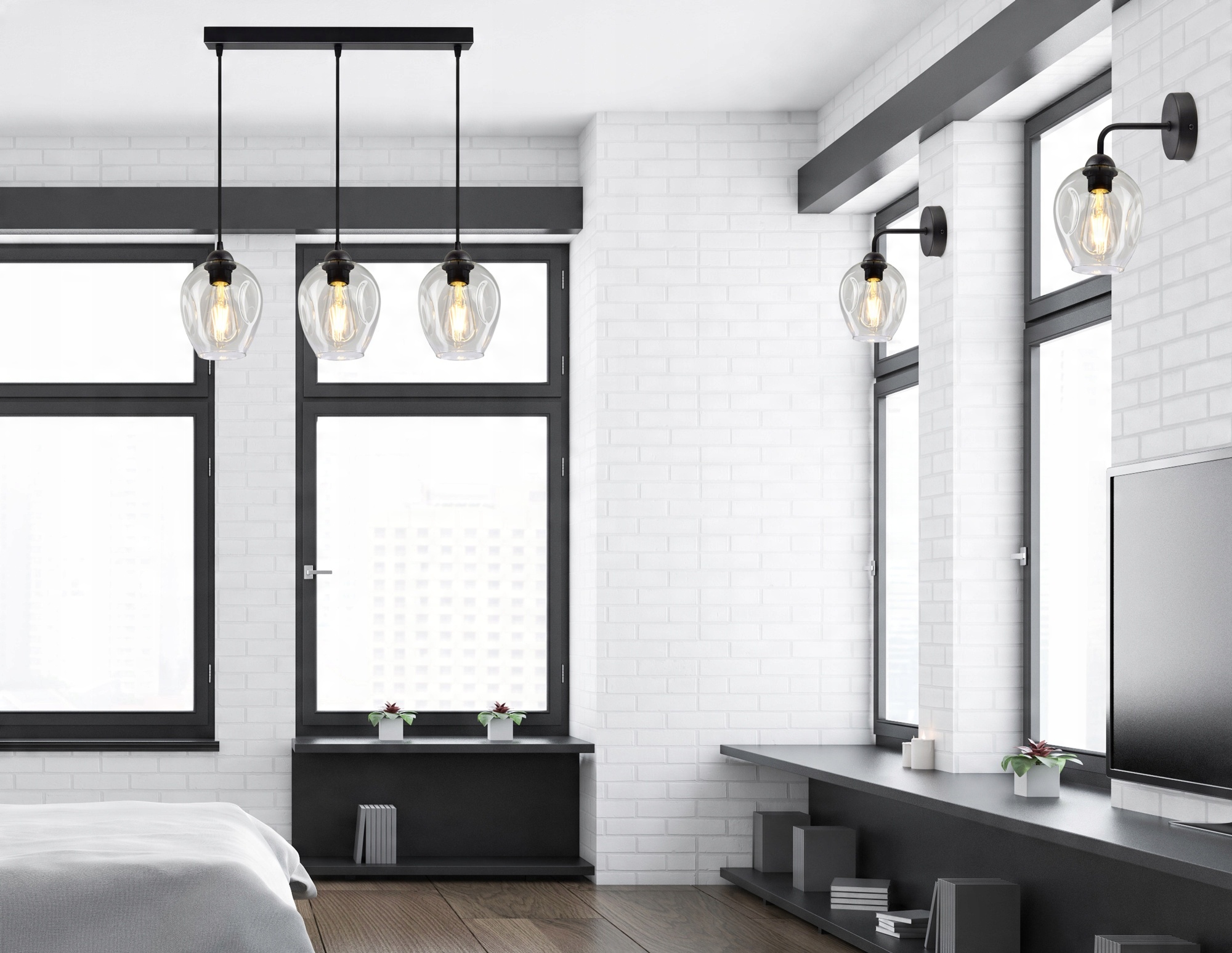 Lampa Wisząca Żyrandol Plafon 3 Klosze Transparent