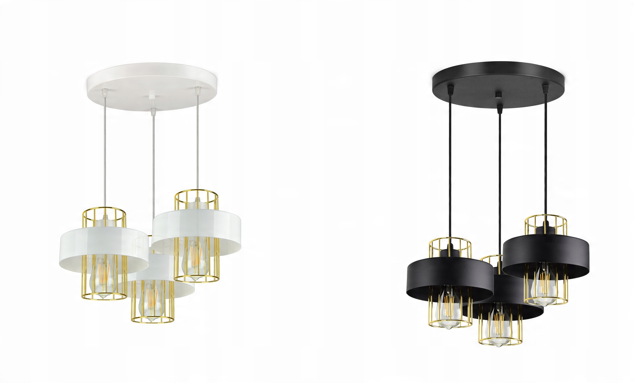 Lampa Wisząca Żyrandol Plafon Czarny Biały LOFT