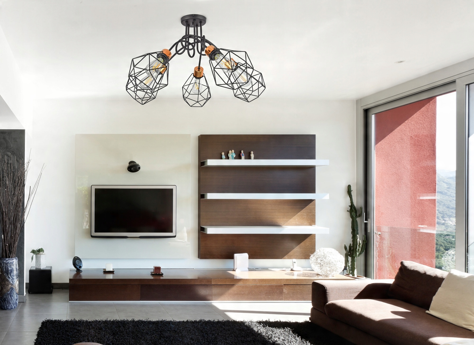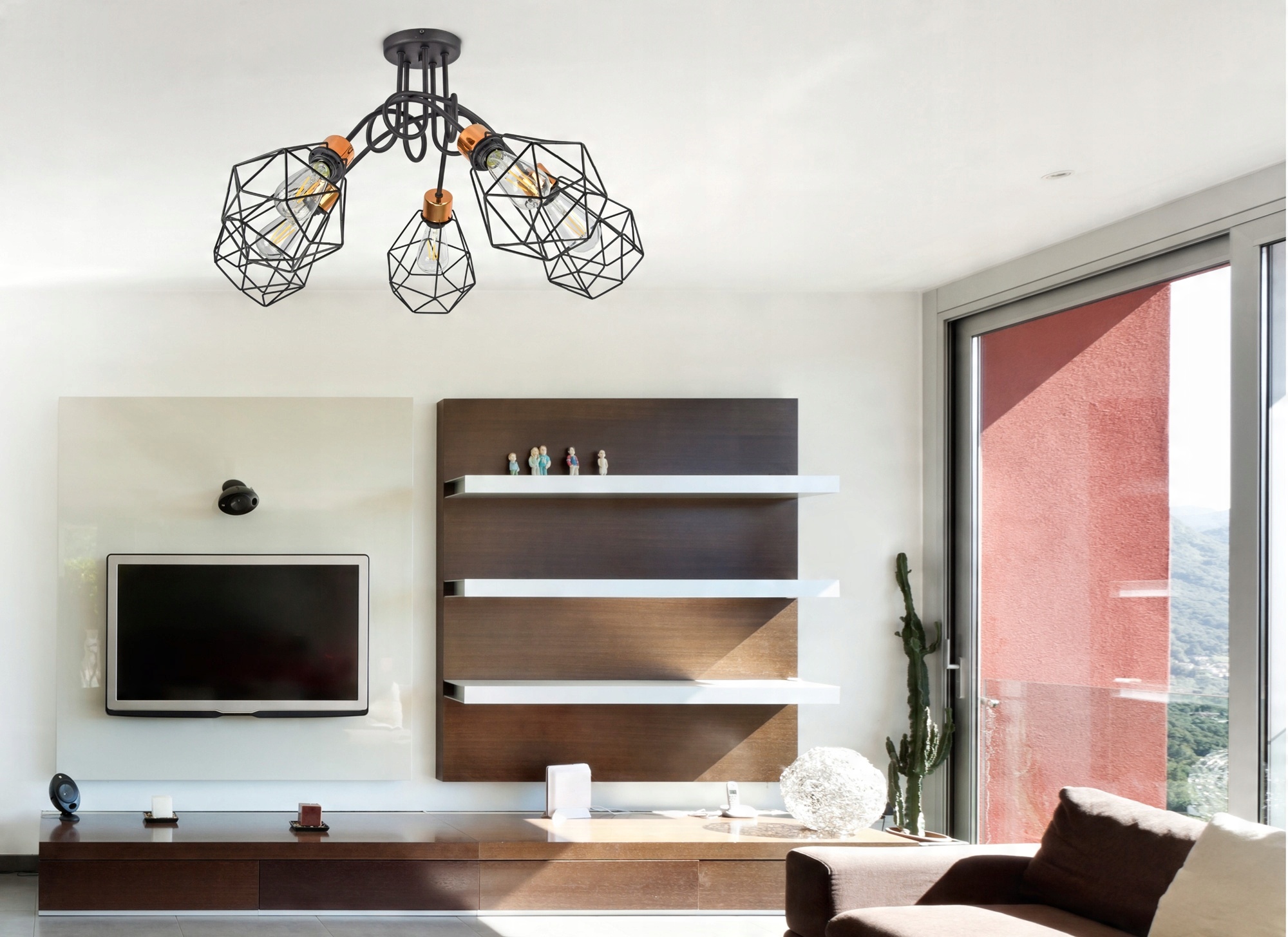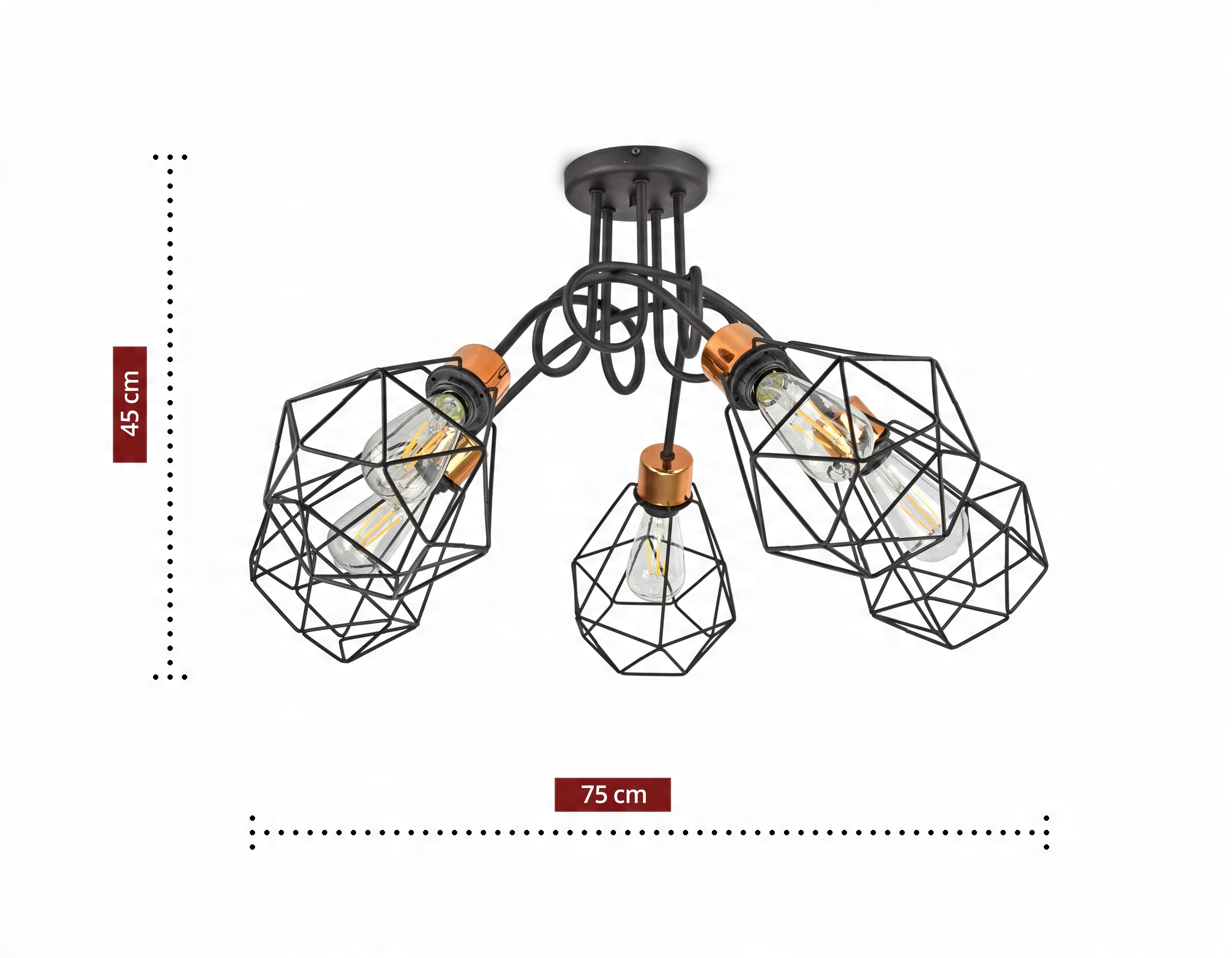 Lampa Wisząca Żyrandol Plafon Diament Miedź LED