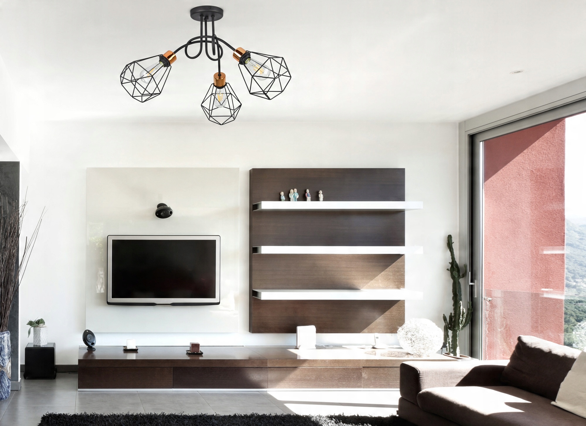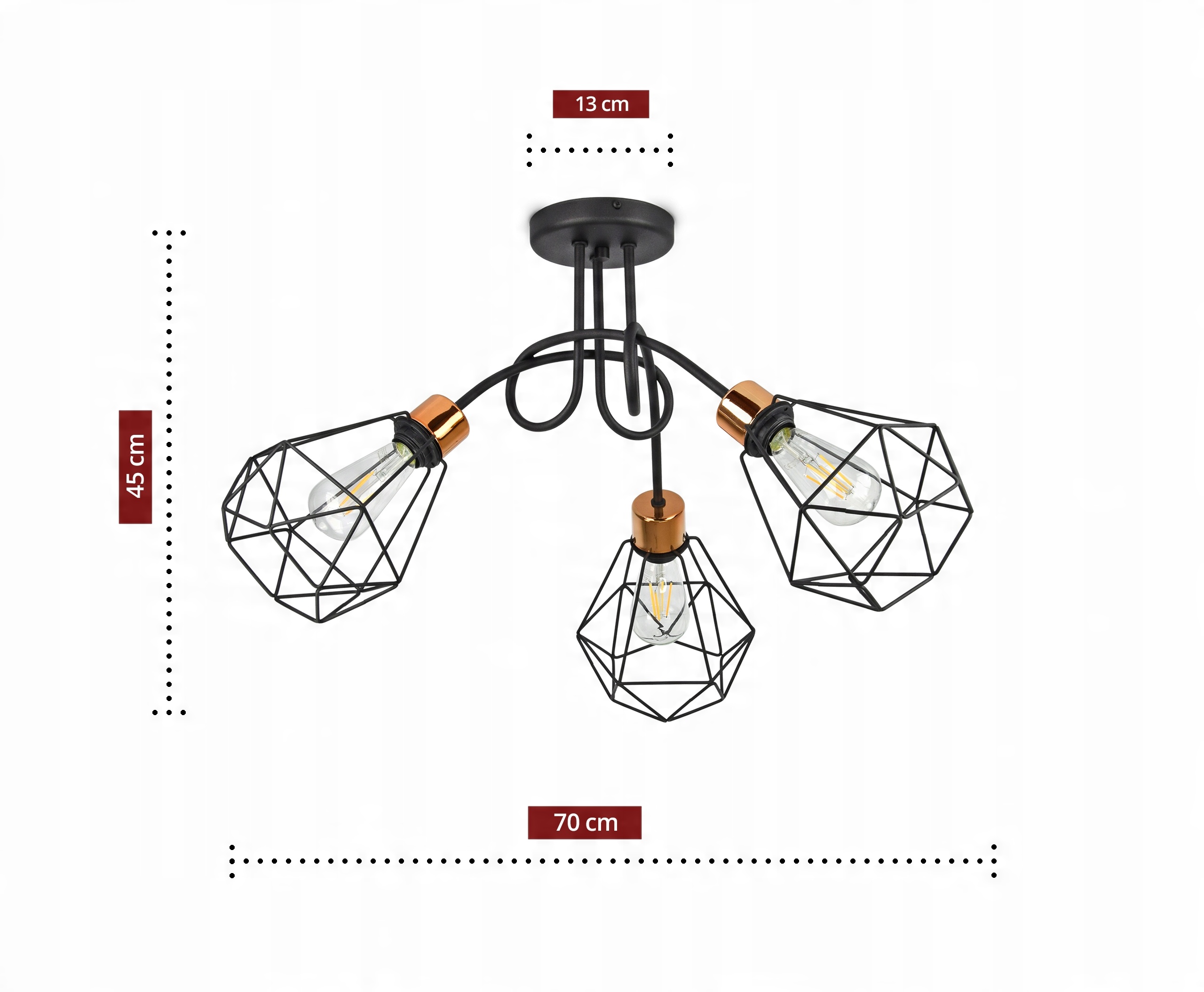 Lampa Wisząca Żyrandol Plafon Diament Miedź LED
