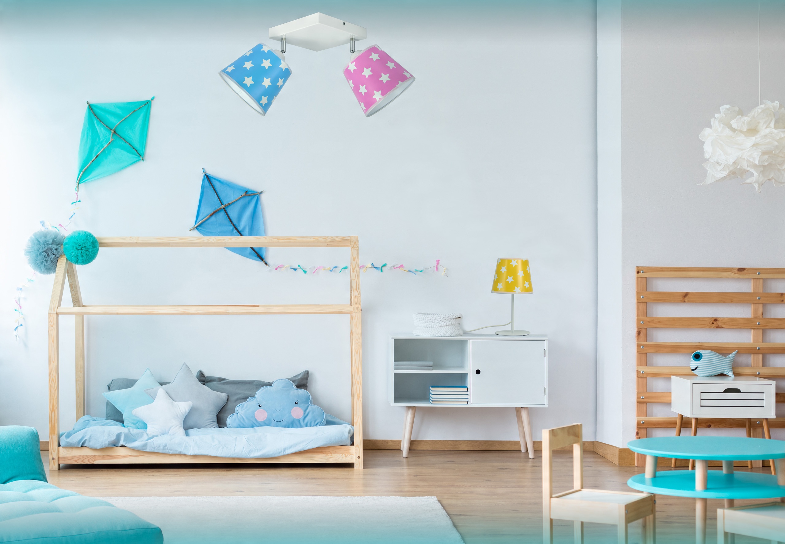 Kolorystyka lampki umożliwia zastosowanie zarówno w pokoju chłopca jak i dziewczynki.