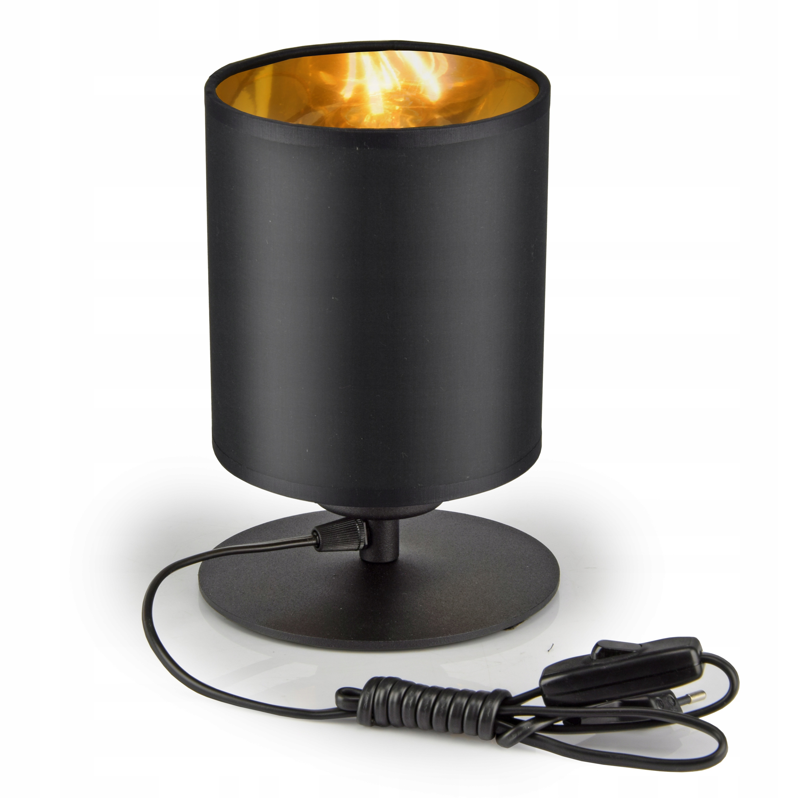 Czarna konstrukcja i abażur ze złotymi elementami to świetne połączenie w nowoczesnych wnętrzach.
