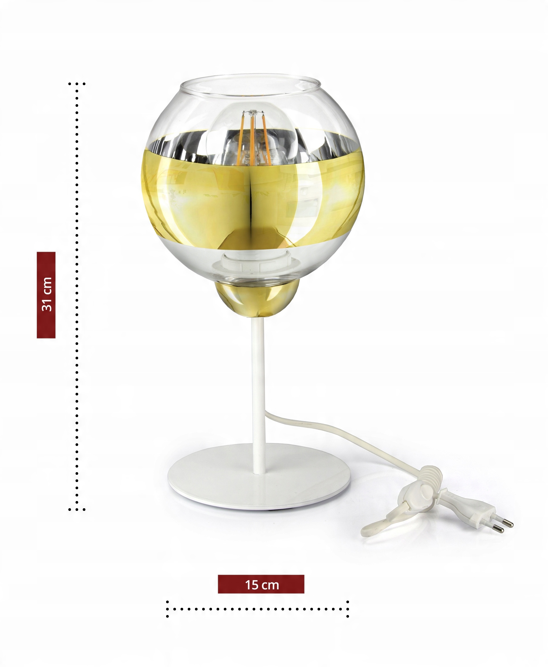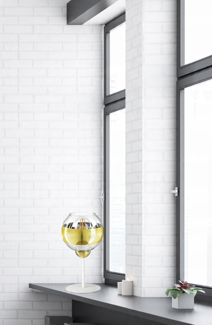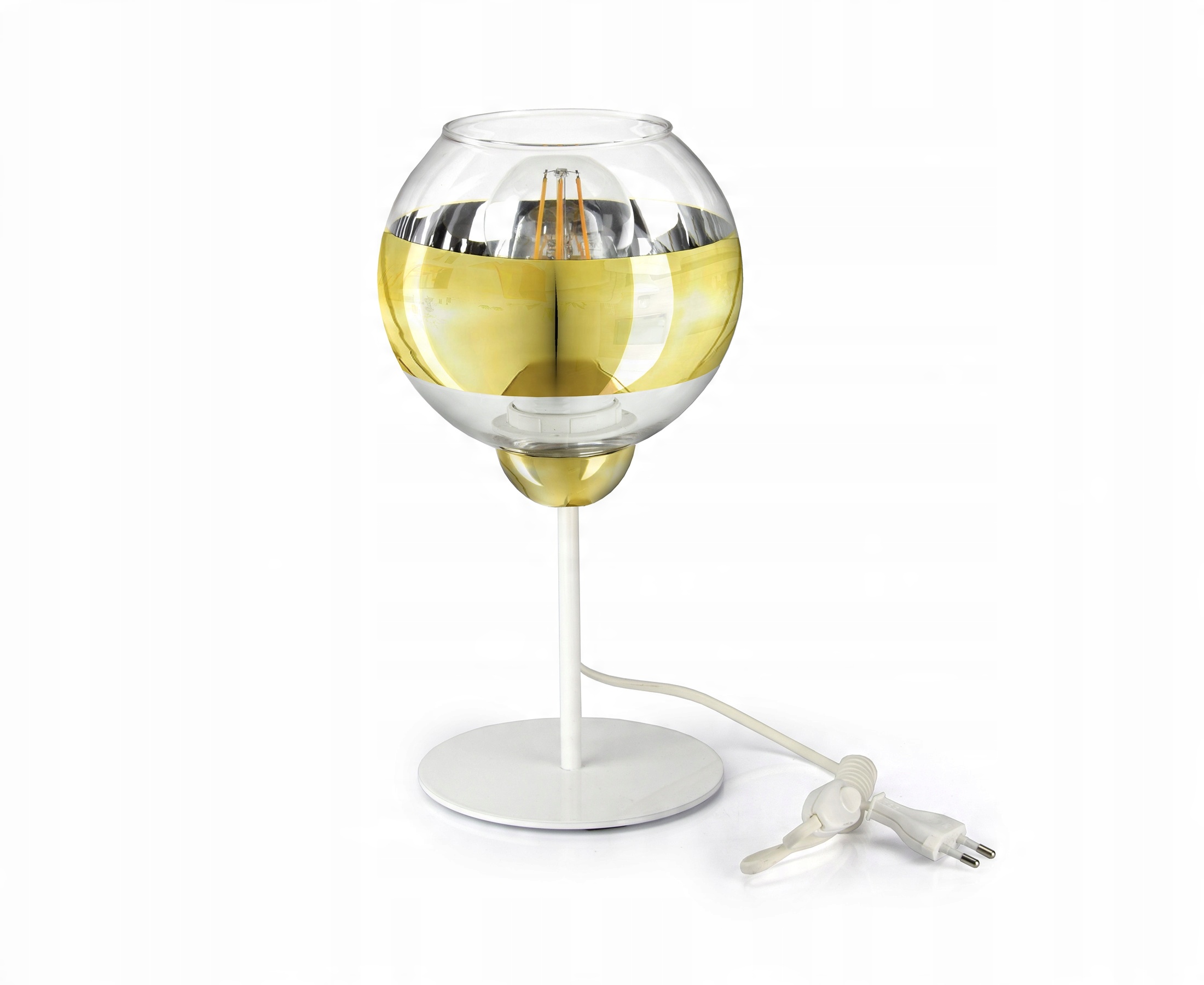 Lampka Stołowa Nocna Biała Złota GLASS L1 LED E27