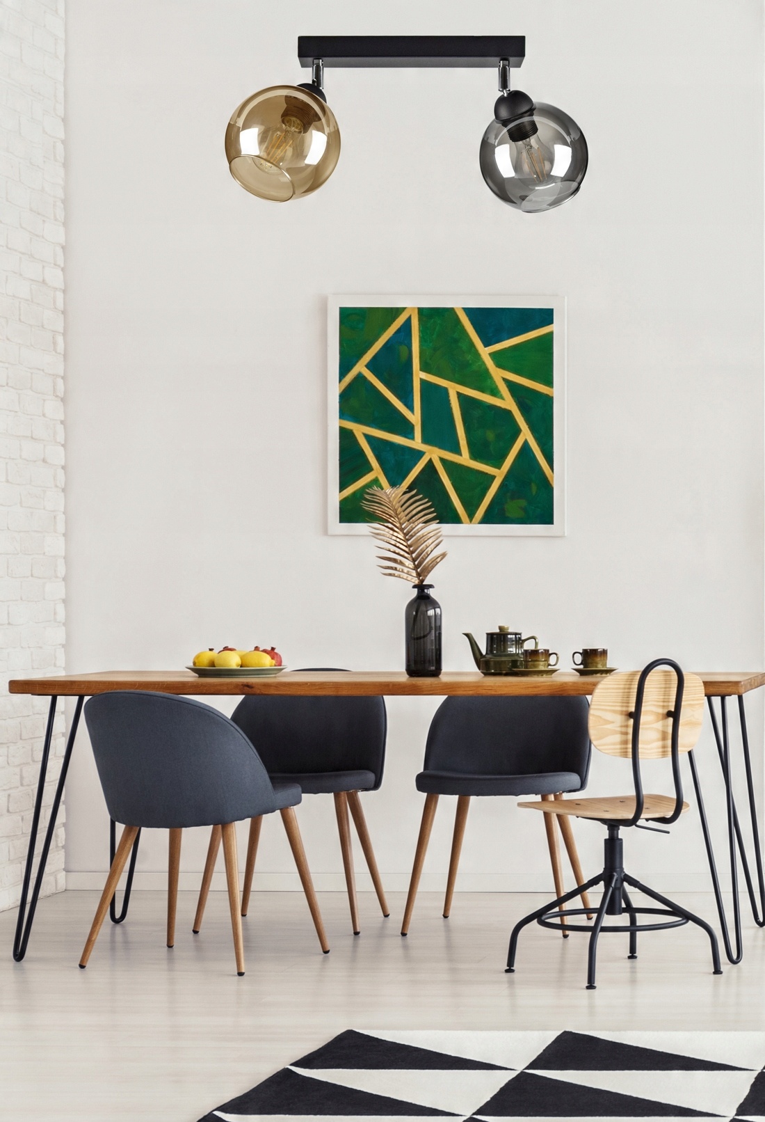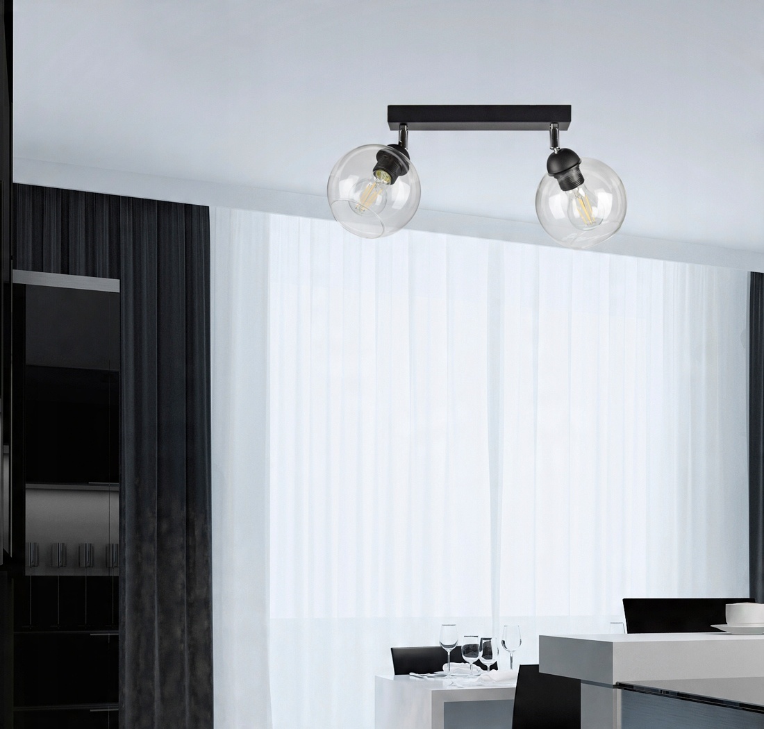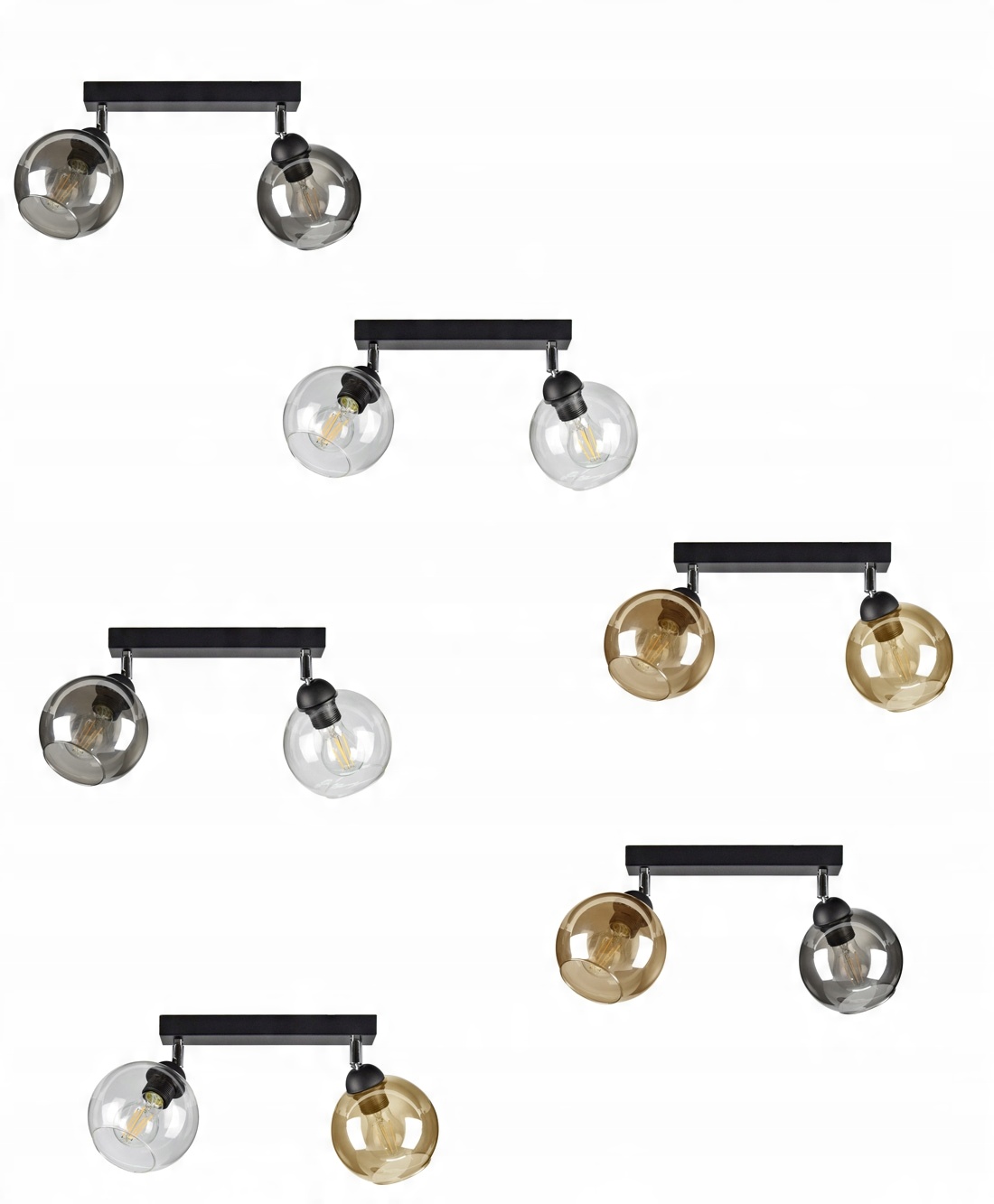 Praktyczna i nowoczesna lampa wisząca wyposażona w dwa szklane klosze dostępne do wyboru w różnych odcieniach.