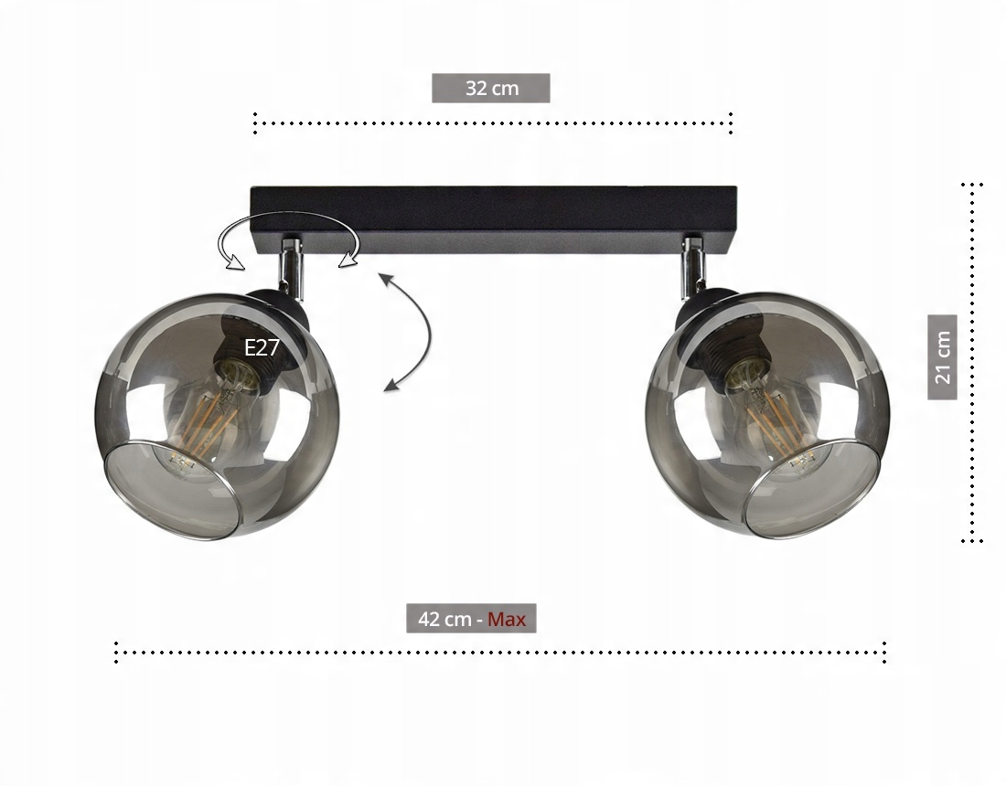 - Źródło światła: E-27 - zalecane LED lub świetlówki kompaktowe