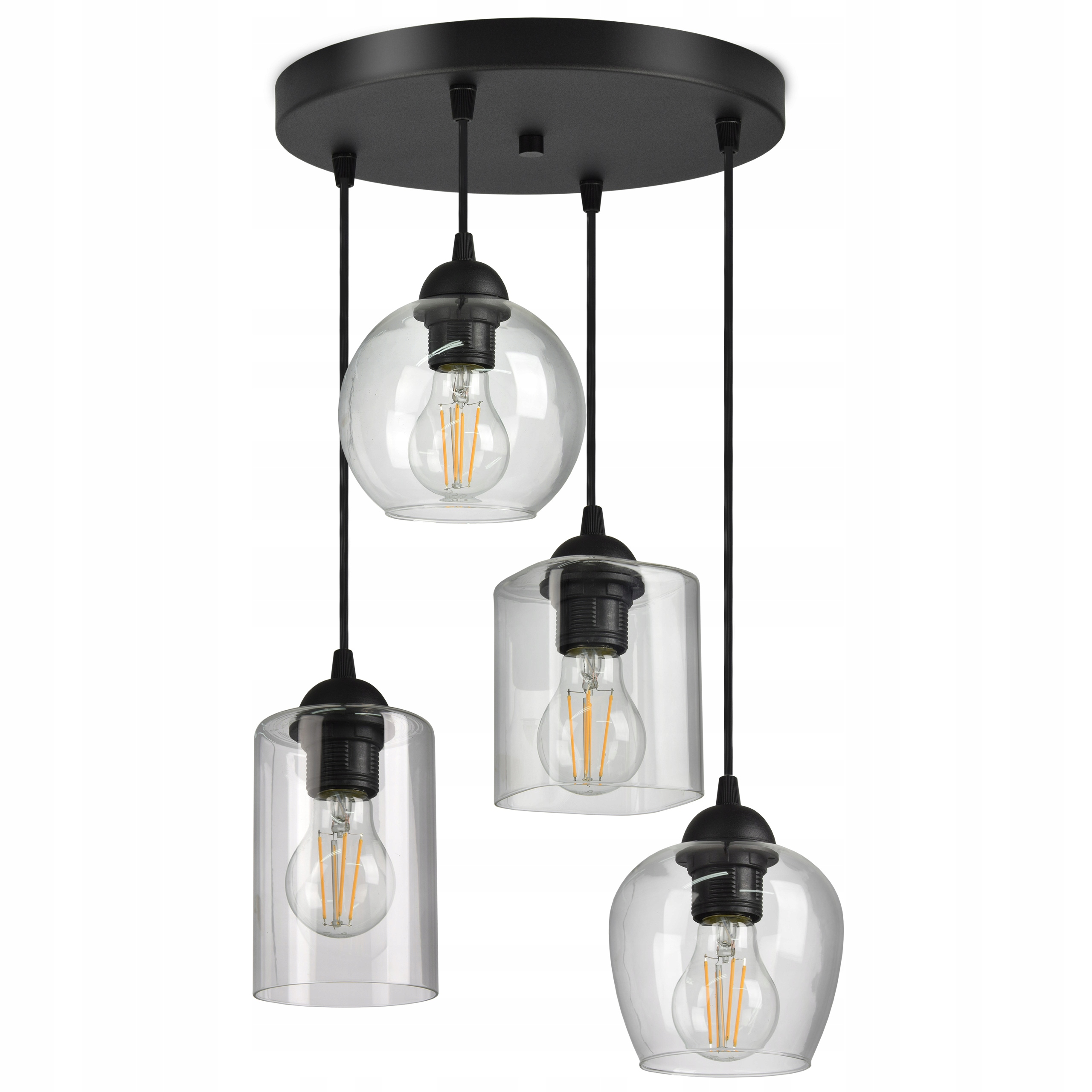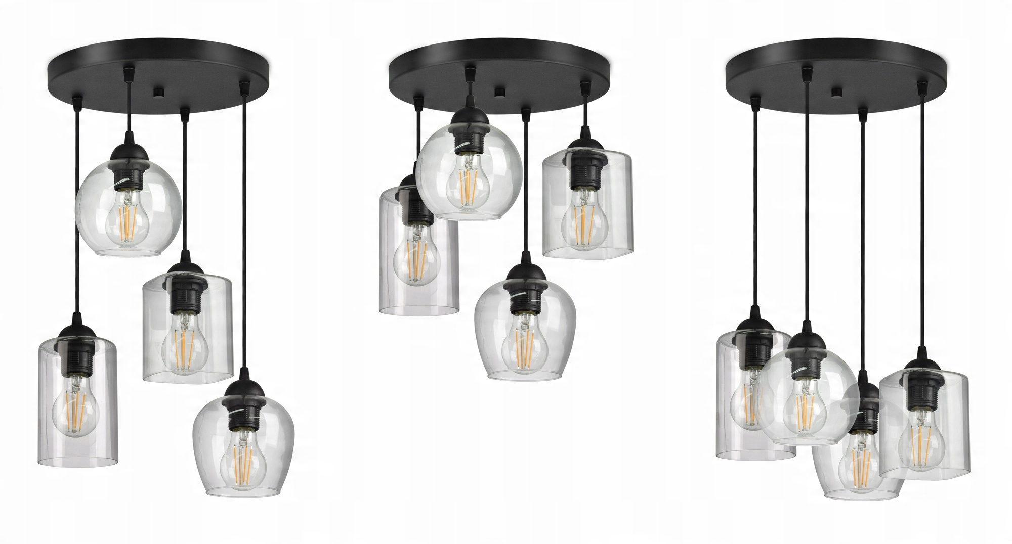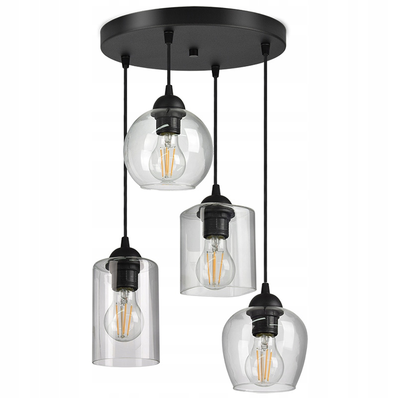 Uwaga: Nie ma możliwości wyboru lub zmiany kształtu kloszy - Otrzymasz lampę z czterema różnymi kloszami jak poniżej.