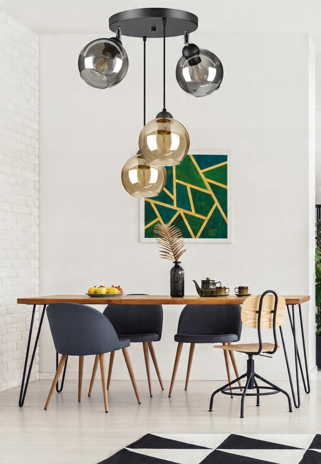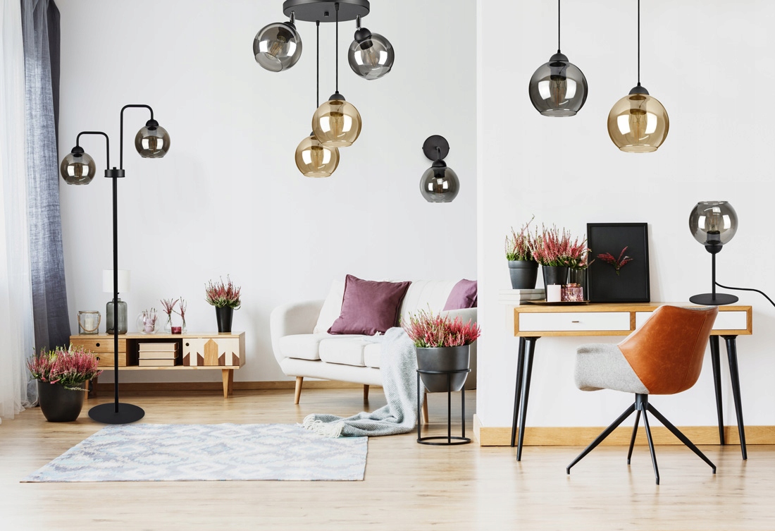 - Żyrandol pochodzi z szerszej rodziny lamp szklanych - bez problemu dokupisz do kompletu kinkiet czy lampkę nocną
