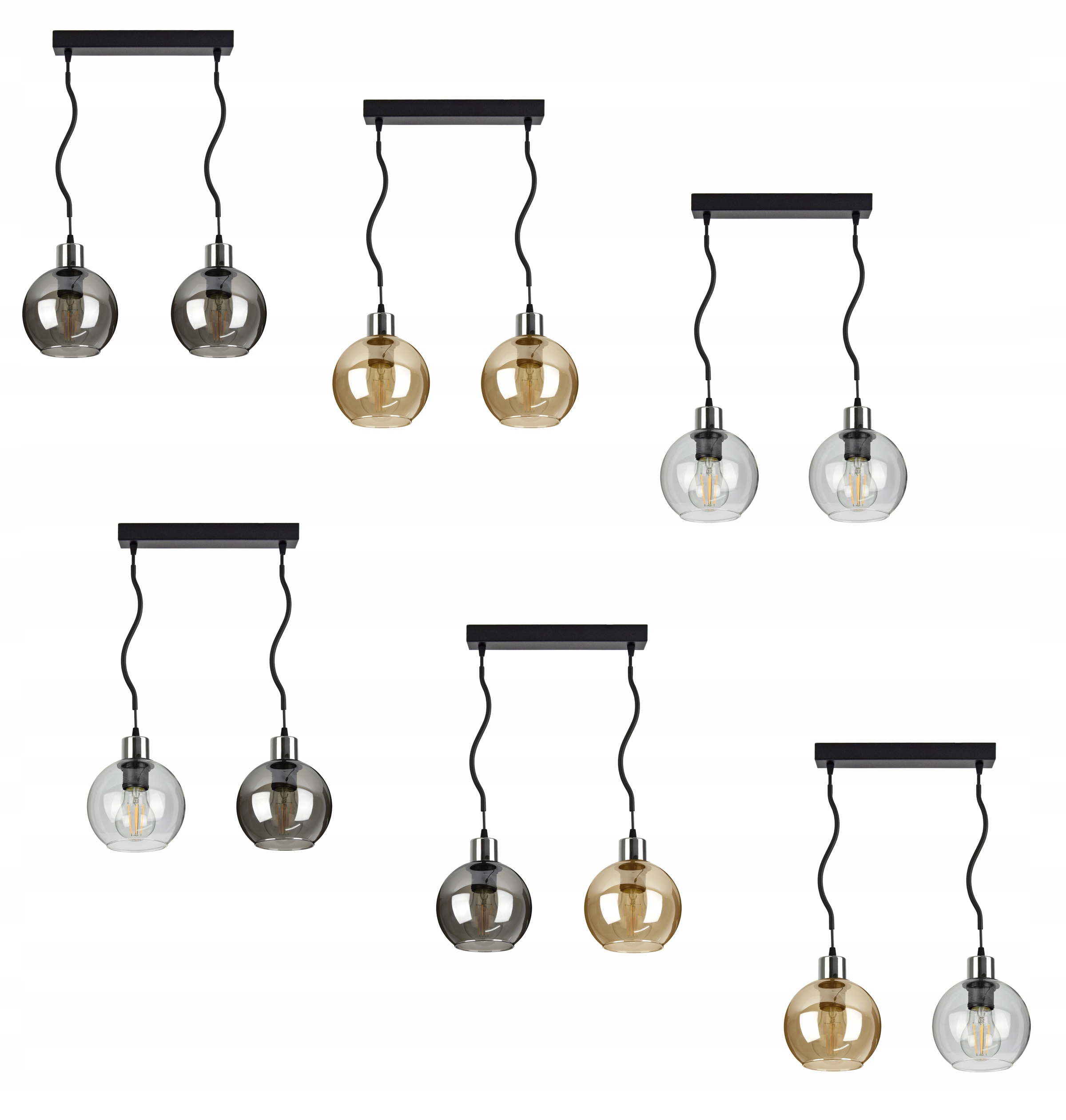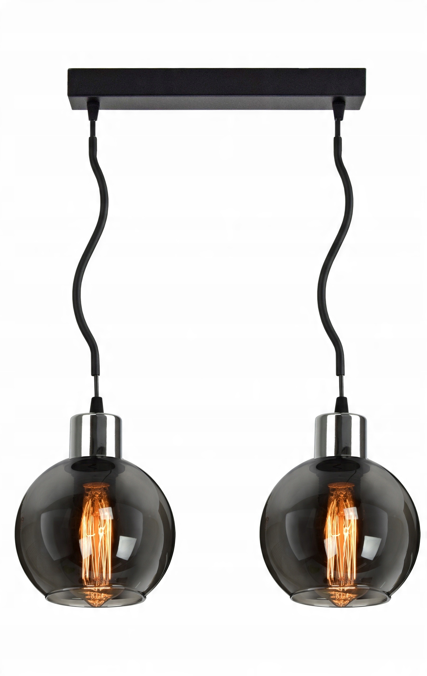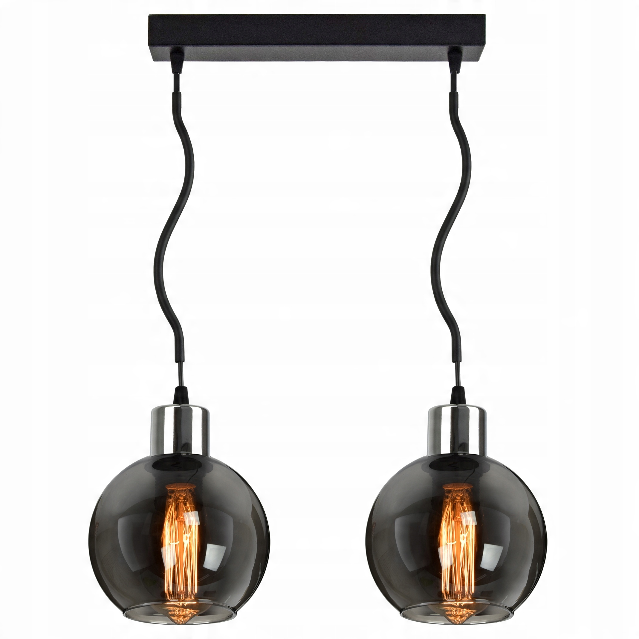 Nowoczesna lampa wisząca wyposażona w dwa szklane klosze w kształcie kuli.