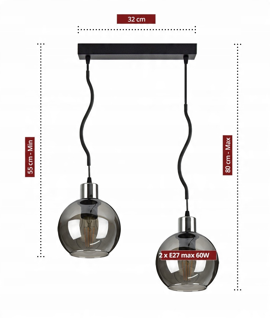 Konstrukcja lampy umożliwia korektę wysokości klosza w zakresie od 50 do 80 cm (przed zamontowaniem).