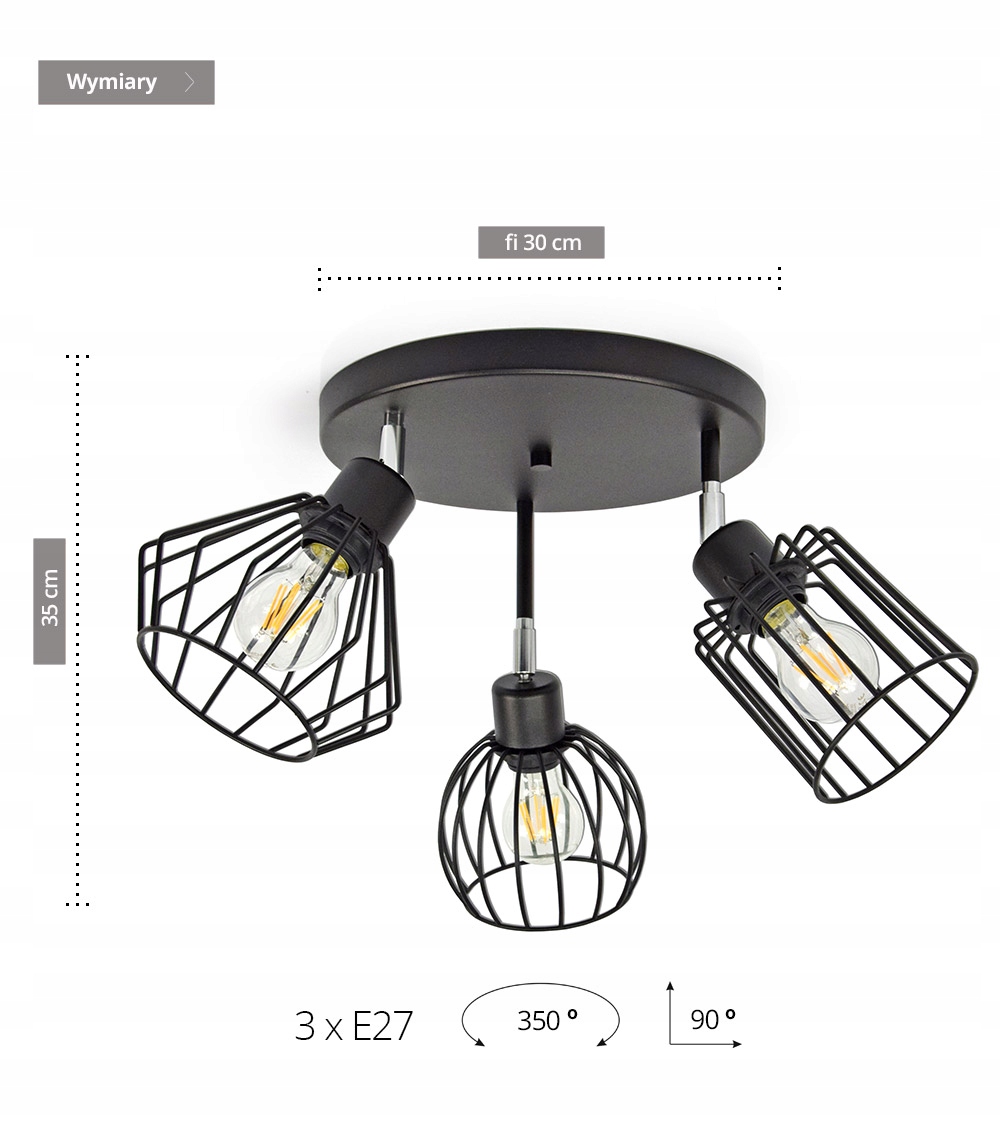 Zestaw nie zawiera widocznych na zdjęciu żarówek oraz kołków montażowych.