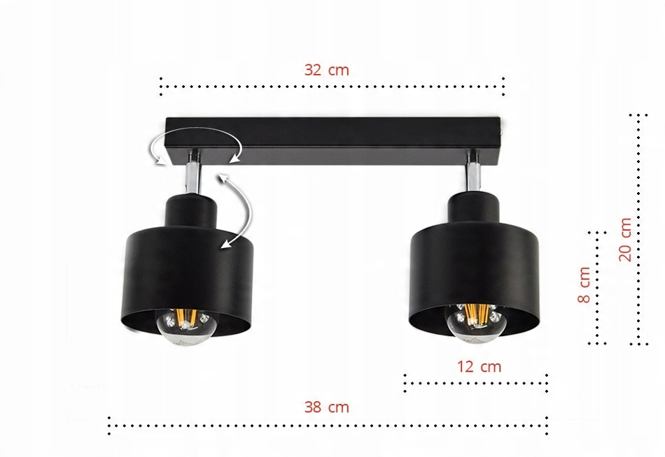 Nowa Lampa Sufitowa żyrandol Plafon 384-B2 w stylu minimalistycznym z abażurami na kształt dwóch ruchomych walców.