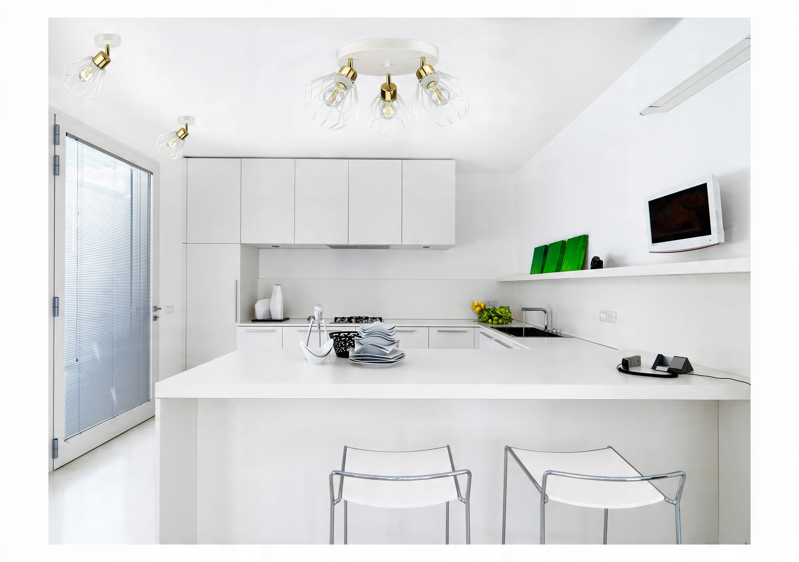 W zespole kilku identycznych sztuk tworzy zbiór lamp oświetlający większe pomieszczenia