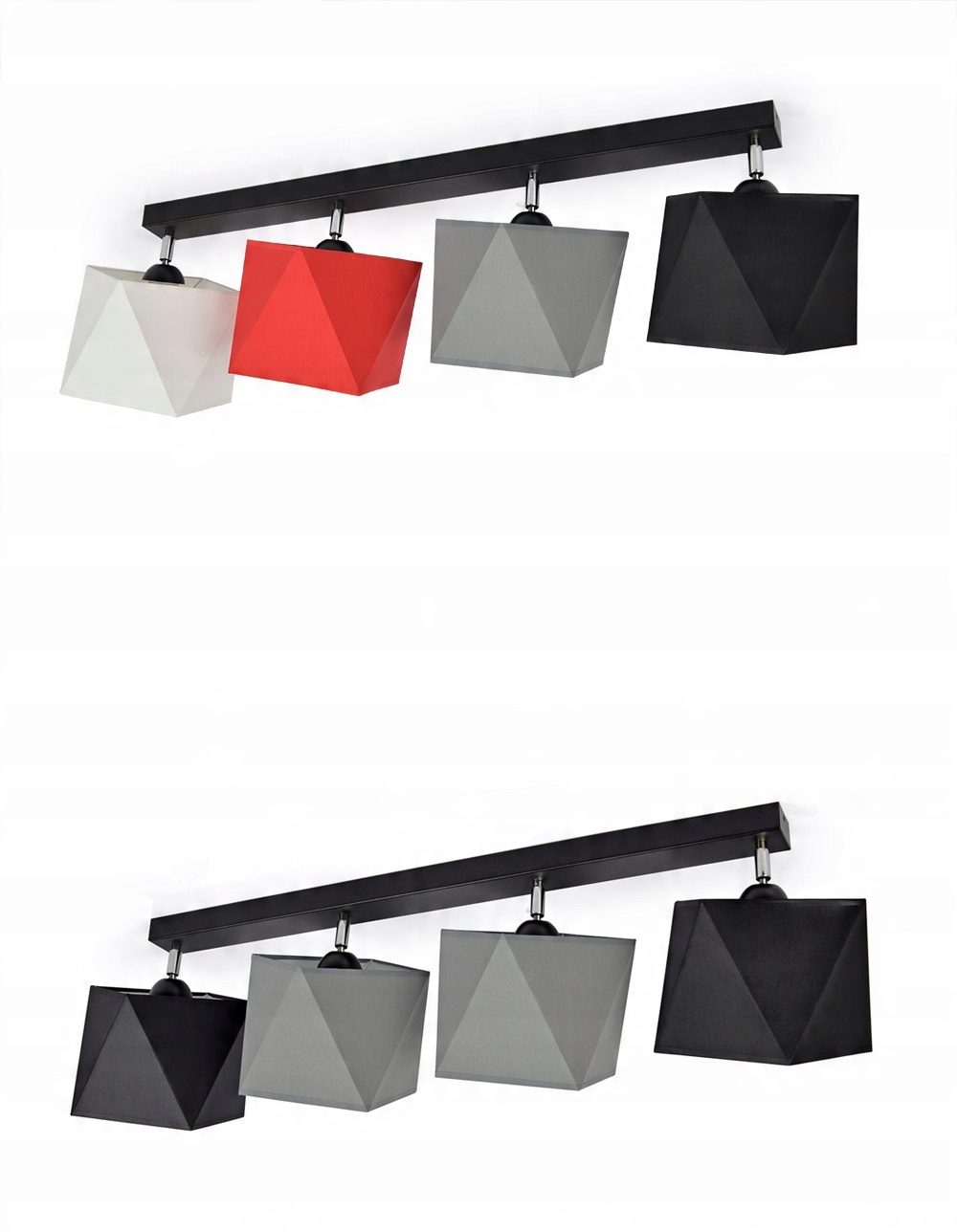 Nowa Lampa Plafon w stylu minimalistycznym z abażurami na kształt czterech ruchomych diamentów.