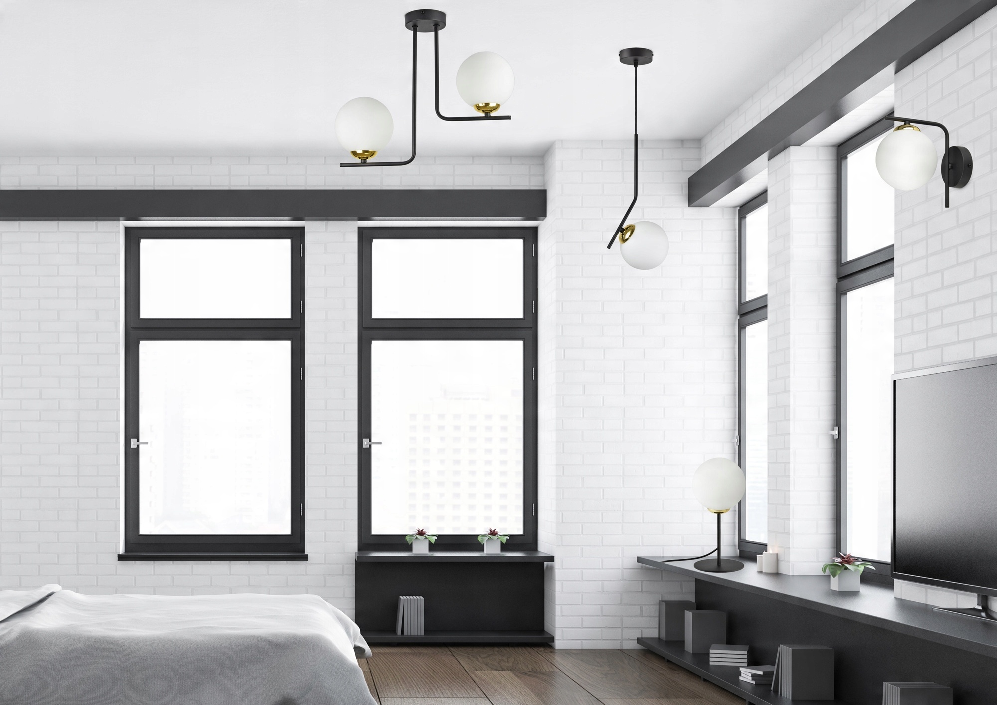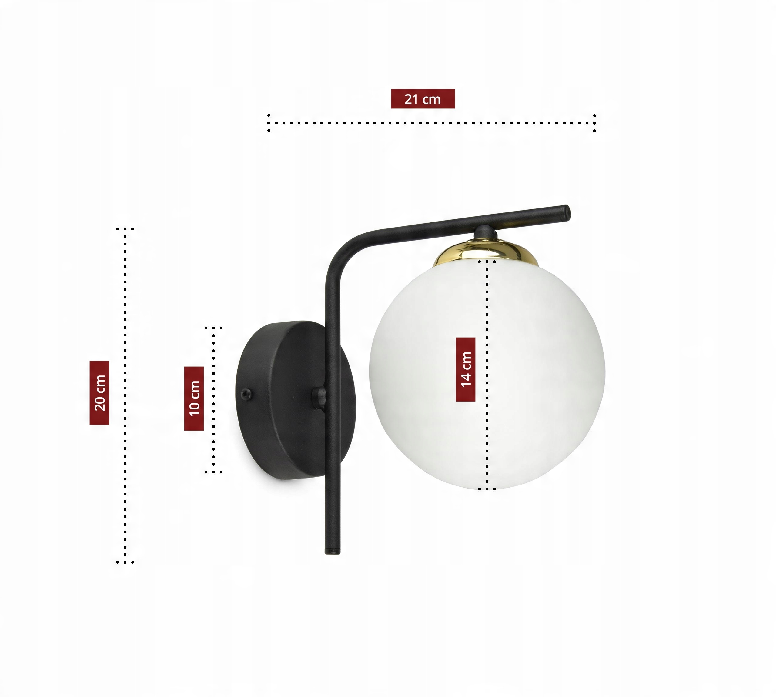 LAMPA ŚCIENNA KINKIET Czarna ZŁOTA KULA MLECZNA