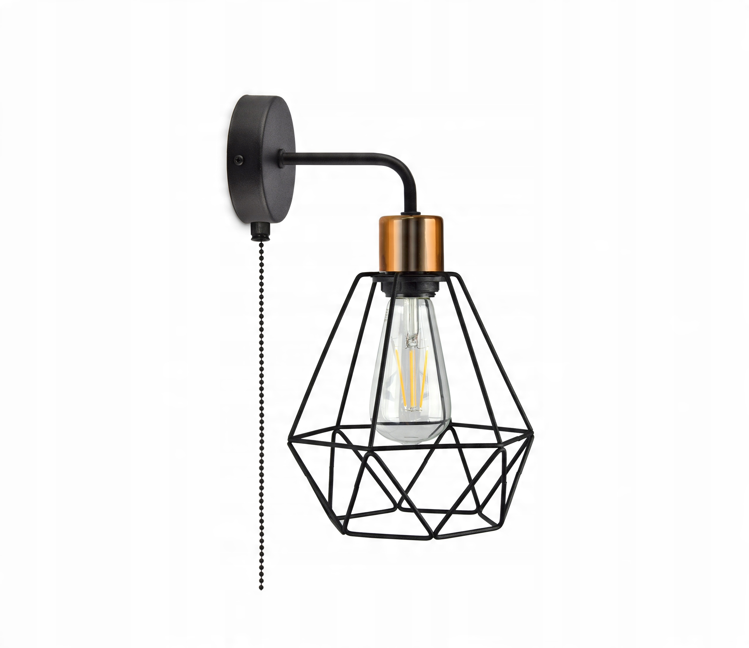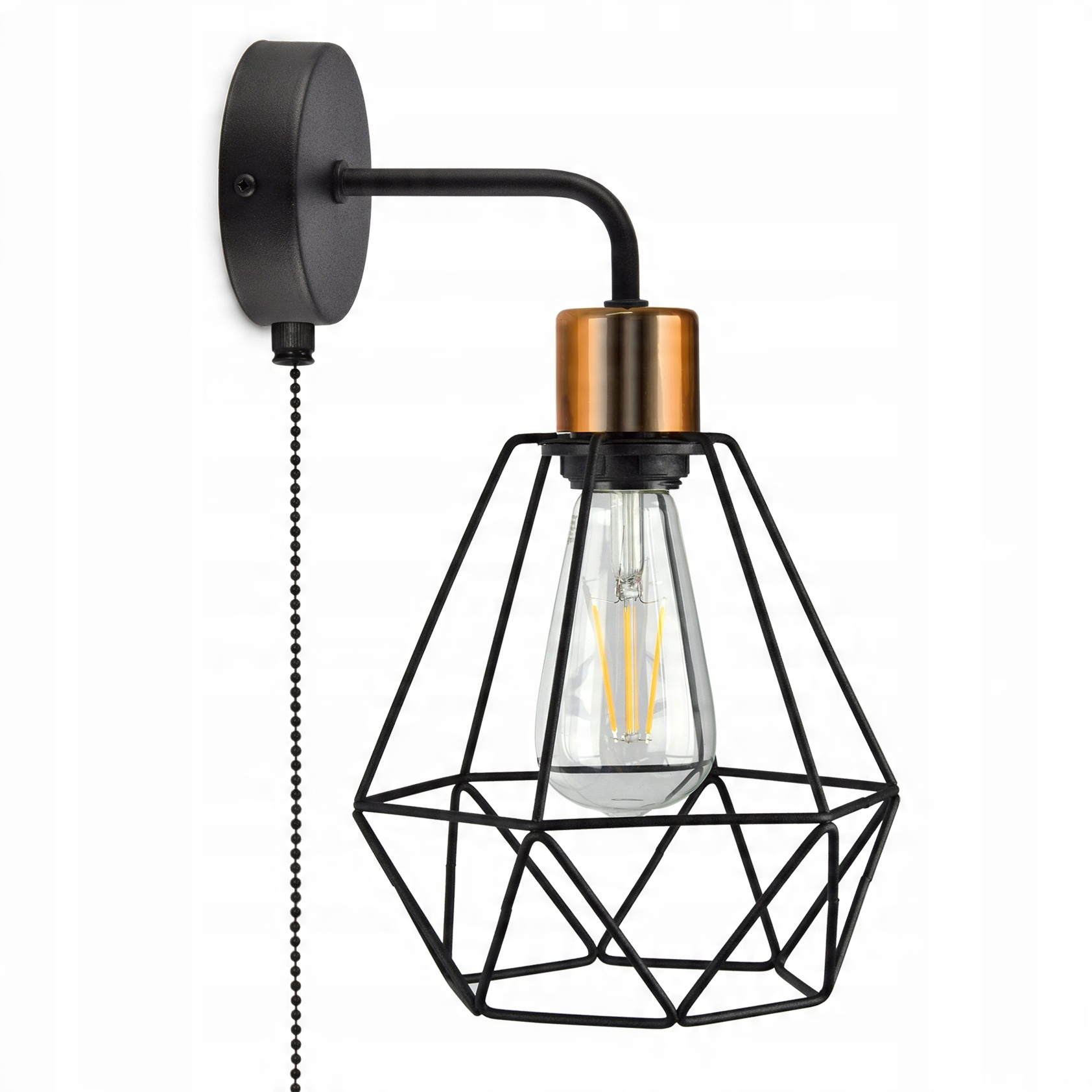 - Kompletny, złożony kinkiet z osłoną drucianą (nie jest to chińskiej produkcji zestaw do samodzielnego montażu)