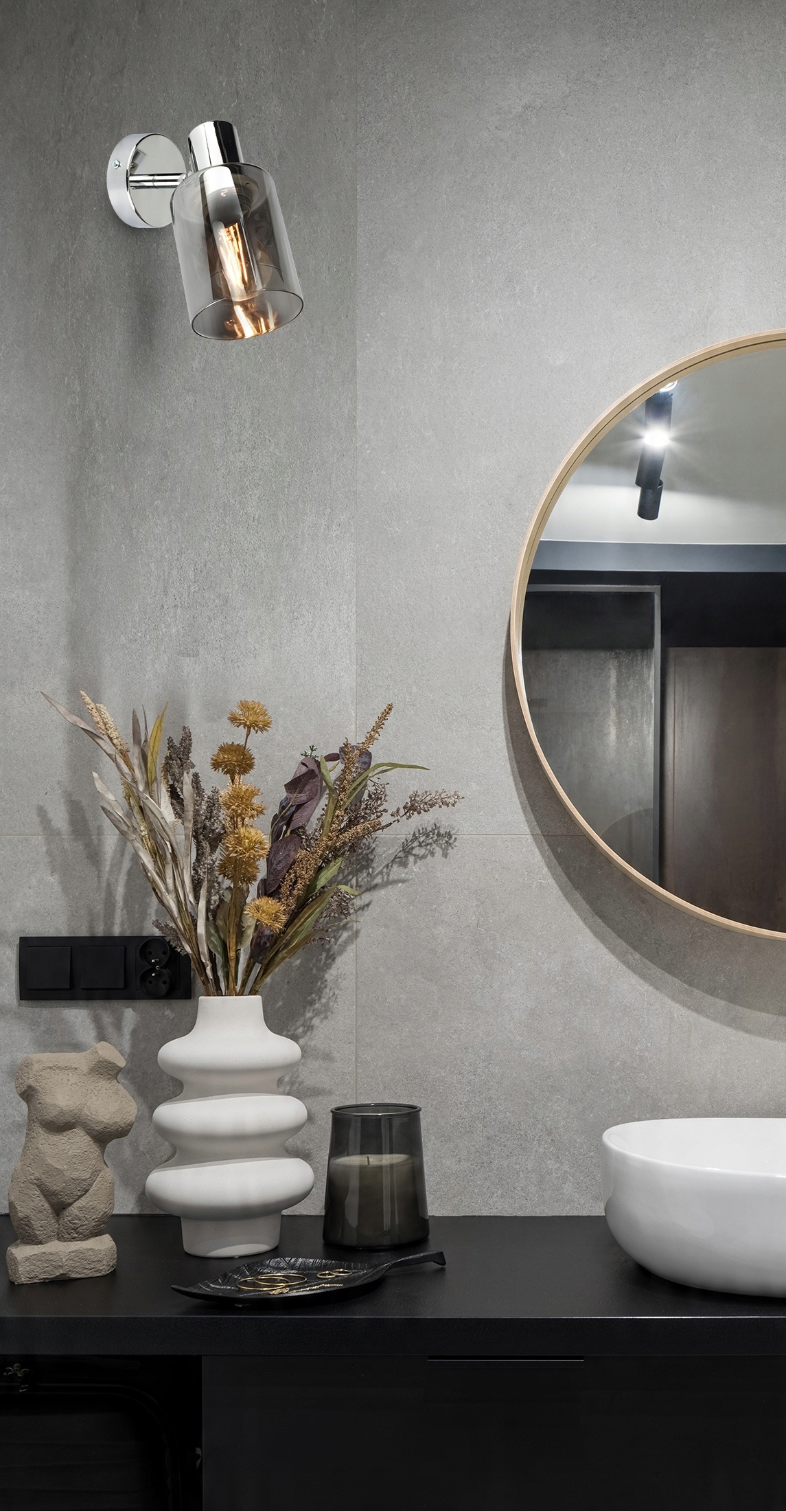 ✅ Lampa wyposażona w szklany, dymiony klosze w kształcie tuby,