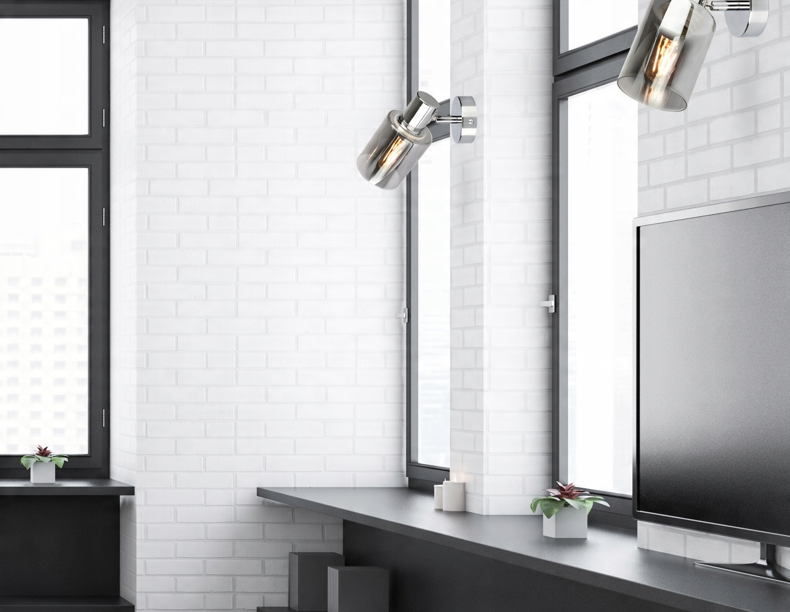 Oprawa natynkowa, metalowa ze szklanymi kloszami mająca zastosowanie jako oświetlenie wewnętrzne, z wyłączeniem miejsc o podwyższonej wilgotności.