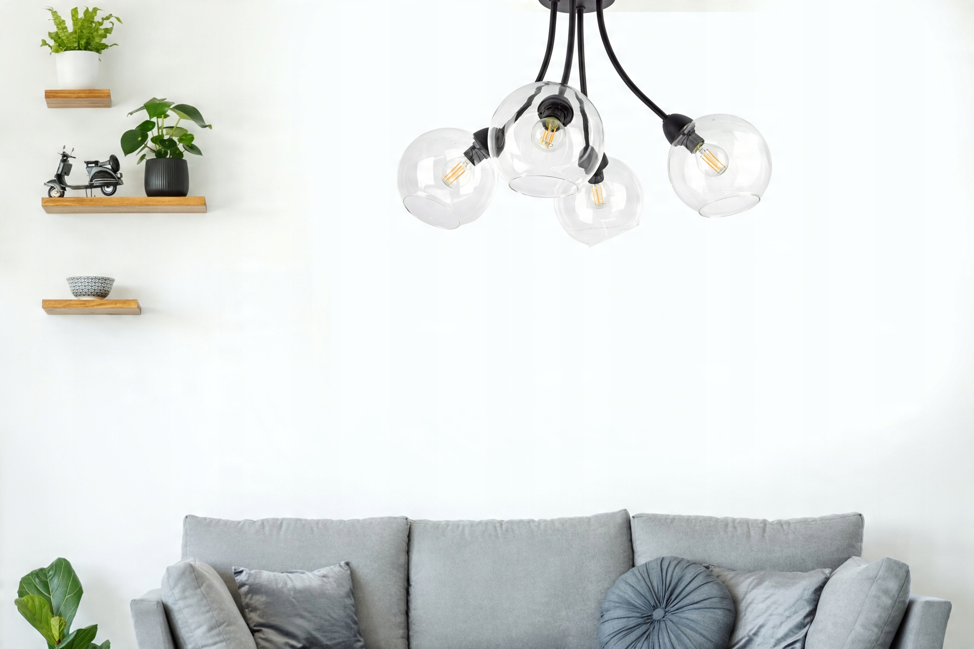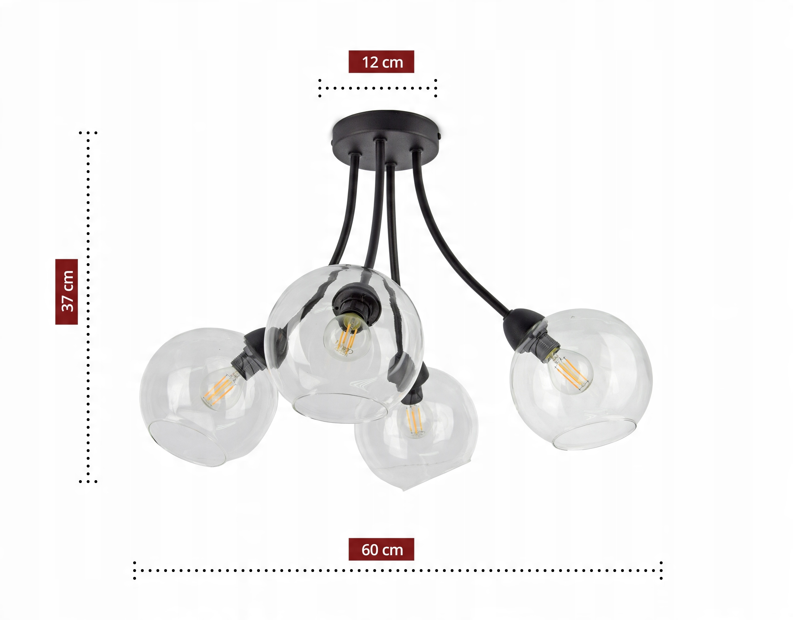Lampa Sufitowa Plafon 4 Szklane Kule Transparent